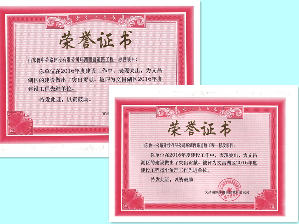 經(jīng)過一年的努力,項目施工得到建設(shè)單位、質(zhì)安站等單位的一致認(rèn)可,在2017年2月20日舉行的“文昌湖區(qū)建設(shè)系統(tǒng)2016年度考核表彰大會”中,獲得“文昌湖區(qū)2016年度建設(shè)工程先進(jìn)單位”及“文昌湖區(qū)2016年度建設(shè)工程揚塵治理工作先進(jìn)單位”榮譽稱號,項目經(jīng)理及總工分別獲得文昌湖區(qū)2016年度建設(shè)工程優(yōu)秀項目經(jīng)理及先進(jìn)個人。