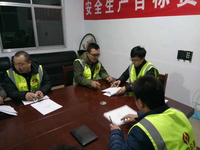 會議首先由項目經理于道江對今年的工程安全形勢做出了總體介紹,對各科室、各部門安全工作任務進行了詳細安排,與項目部各部門、科室之間分別簽訂了安全生產責任書,保障九東路安全生產零事故發(fā)生。九東路項目即將開工,對開工前的各項安全準備工作及安全實施工作進行了系統(tǒng)詳細的安排,做好安全及環(huán)保工作是保障生產的前提。要求制定完善安全監(jiān)督檢查制度;安全例會制度,通報近期安全工作情況;安全巡檢制度,不定期進行安全巡視;加強機械安全管理,各類施工機械及自有車輛的安全保障;特種崗位崗前培訓,不定期進行安全規(guī)程培訓學習;班前安全宣講制度,每道工序開展前進行安全宣講。各部門、各科室也對今年的安全工作范圍做出了具體的匯報及安排。