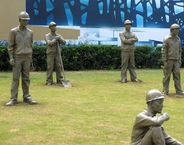 我曾經(jīng)在上海美術館前看到過一群雕塑,我覺得那雕塑的就是一群民工。他們松松散散地面對著大上海最繁華的南京路,你或許覺得有失雅觀,然而這恰是藝術家的匠心所在。正是這雕塑的群像,構成我們中國最本色的生活。