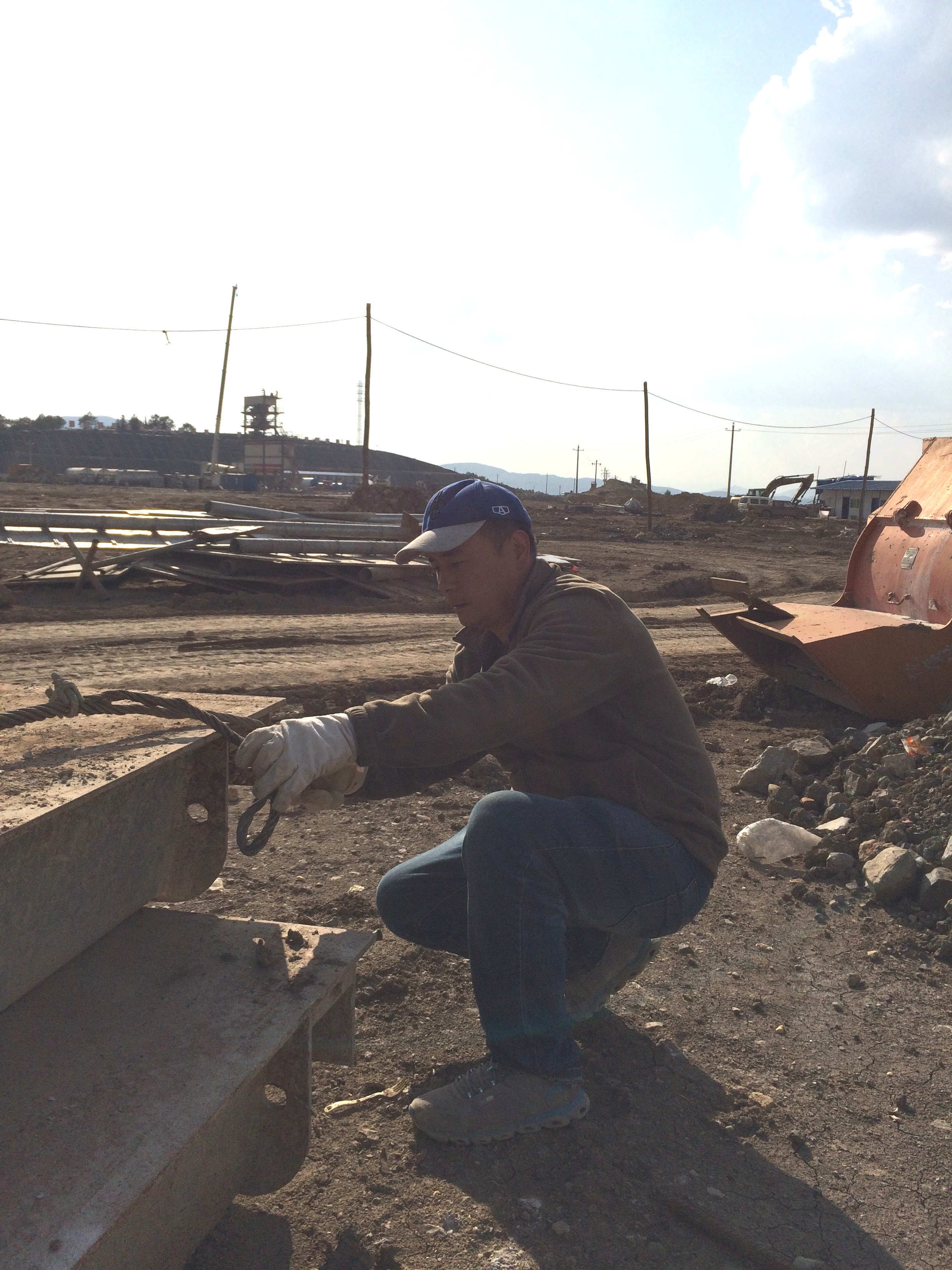 5月1日上午10點正在指揮瀝青拌合站主樓吊裝作業(yè)