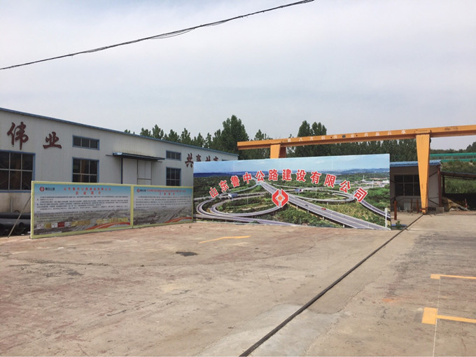 一進(jìn)門,迎面看到的是一幅壯觀的公路高架橋?yàn)楸尘暗聂斨泄沸麄髋?,左?cè)是大幅魯中公路歷史業(yè)績(jī)與魯中公路養(yǎng)護(hù)公司以及博沂路的工程簡(jiǎn)介,把破落的生產(chǎn)工廠阻擋在大家的視線之外。右側(cè)就是三個(gè)集裝箱改裝的職工宿舍整齊的擺放一排,再往后就是一排一層建筑物,房屋側(cè)面可以看到明顯的大字:企業(yè)核心力:擔(dān)當(dāng)、團(tuán)隊(duì)、執(zhí)行力。迎面墻上,設(shè)有“魯中崛起、筑通天下”的博沂路項(xiàng)目部歡迎您的字樣。