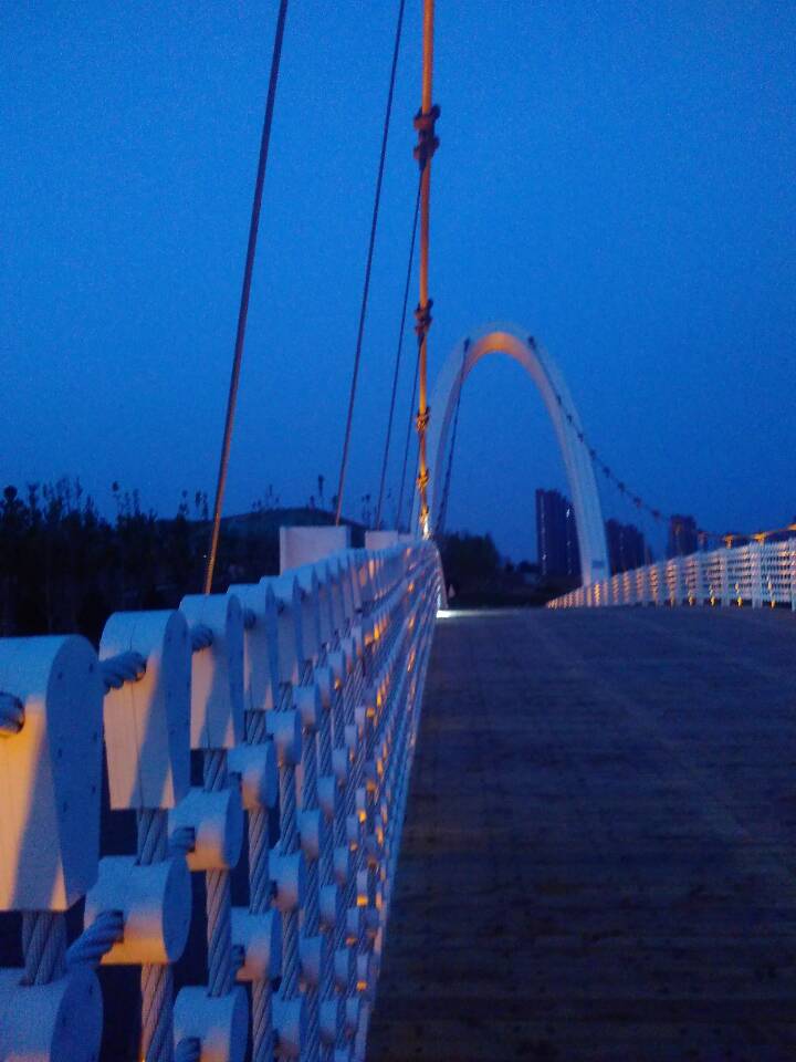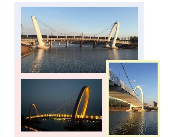 美麗的孝婦河濕地公園內矗立著一座雄偉的白色懸索橋,它緊鄰膠濟鐵路客貨雙線橋,橫跨孝婦河東西兩岸,遠遠望去猶如一條鋼鐵巨龍在陽光下熠熠生輝。陽光下,碧波蕩漾,懸索橋意氣風發(fā)盤踞在水波之中;夜空中,星輝閃耀,懸索橋潔白如玉與銀河相互輝映。這就是由我山東魯中公路建設有限公司所承建的淄博市第一座鋼結構懸索橋。