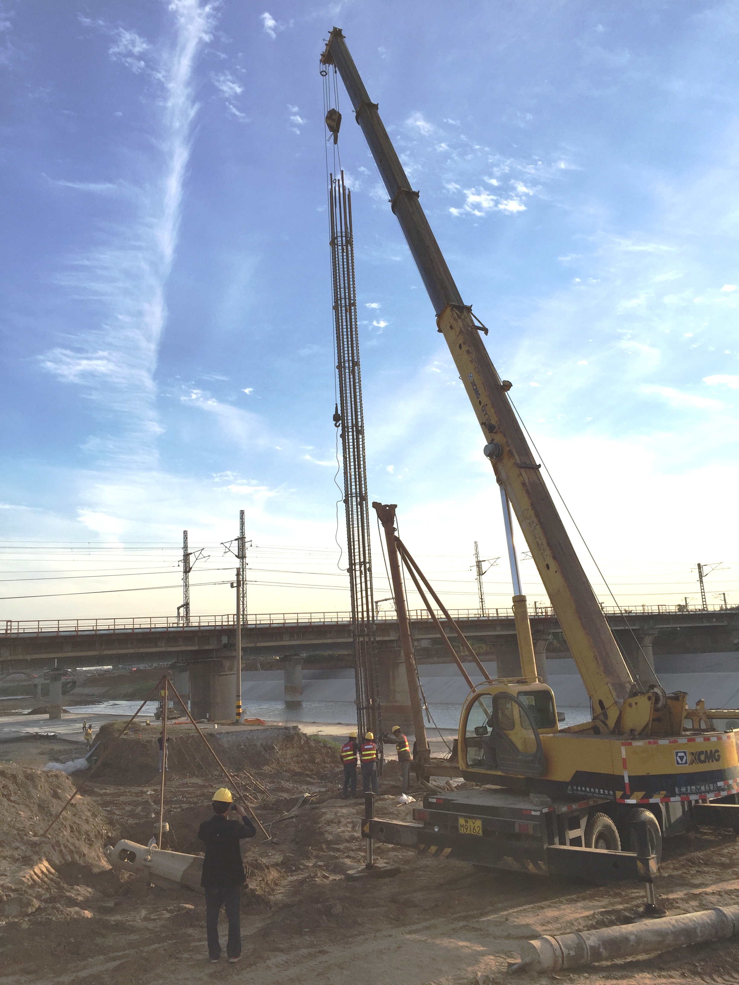 2016年10月8日,第一顆樁基鋼筋籠從鋼筋加工場倒運至施工現(xiàn)場。