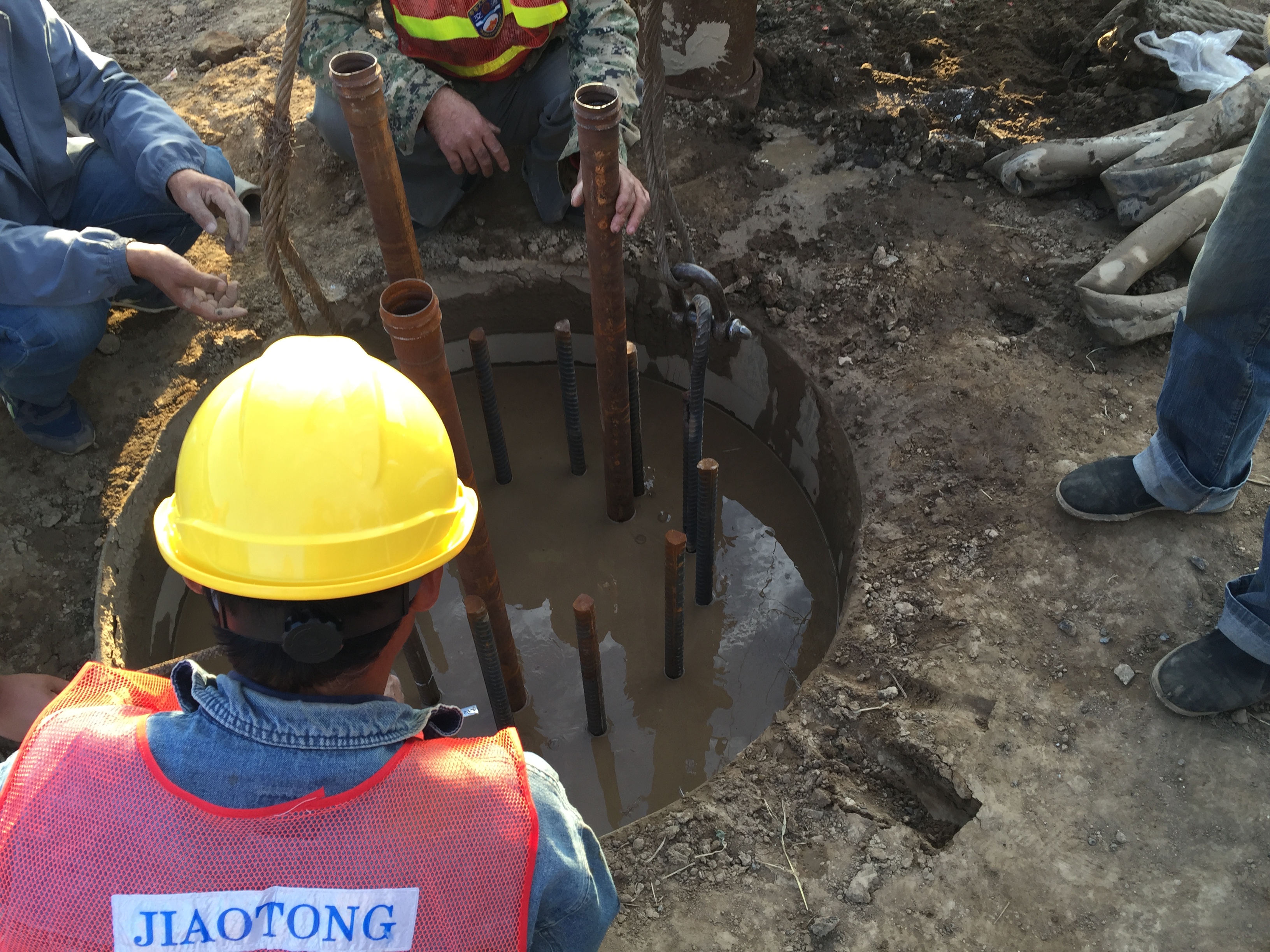 2016年11月24日,利用探孔器檢測樁基成孔質量。