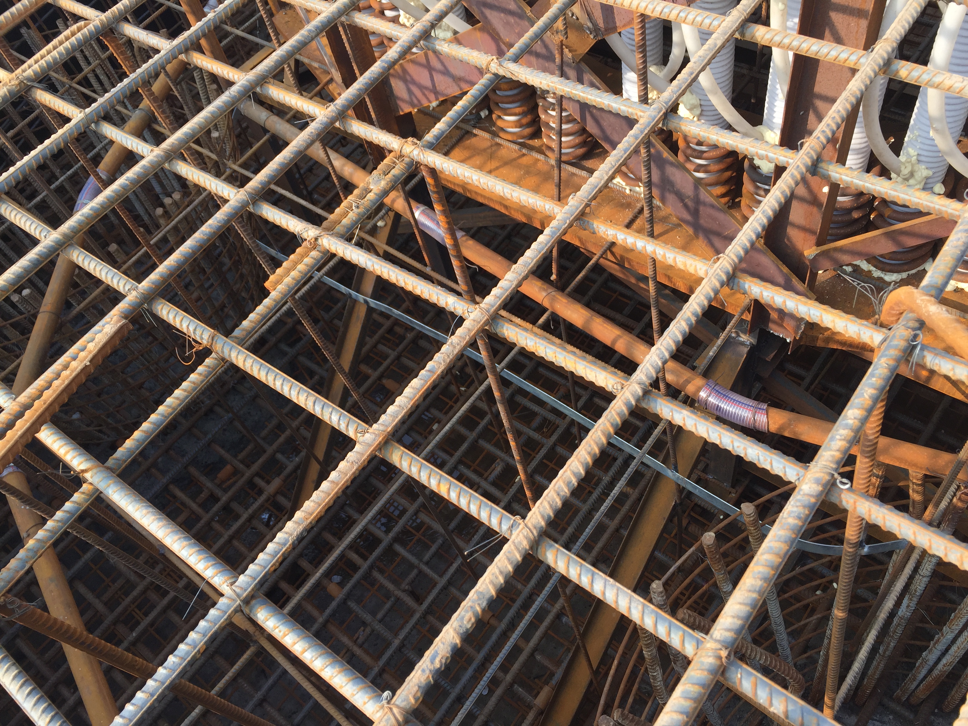 2016年12月13日,組裝起來的預埋鋼板框架,高強度螺栓密集排列,單個主塔就需要58套。