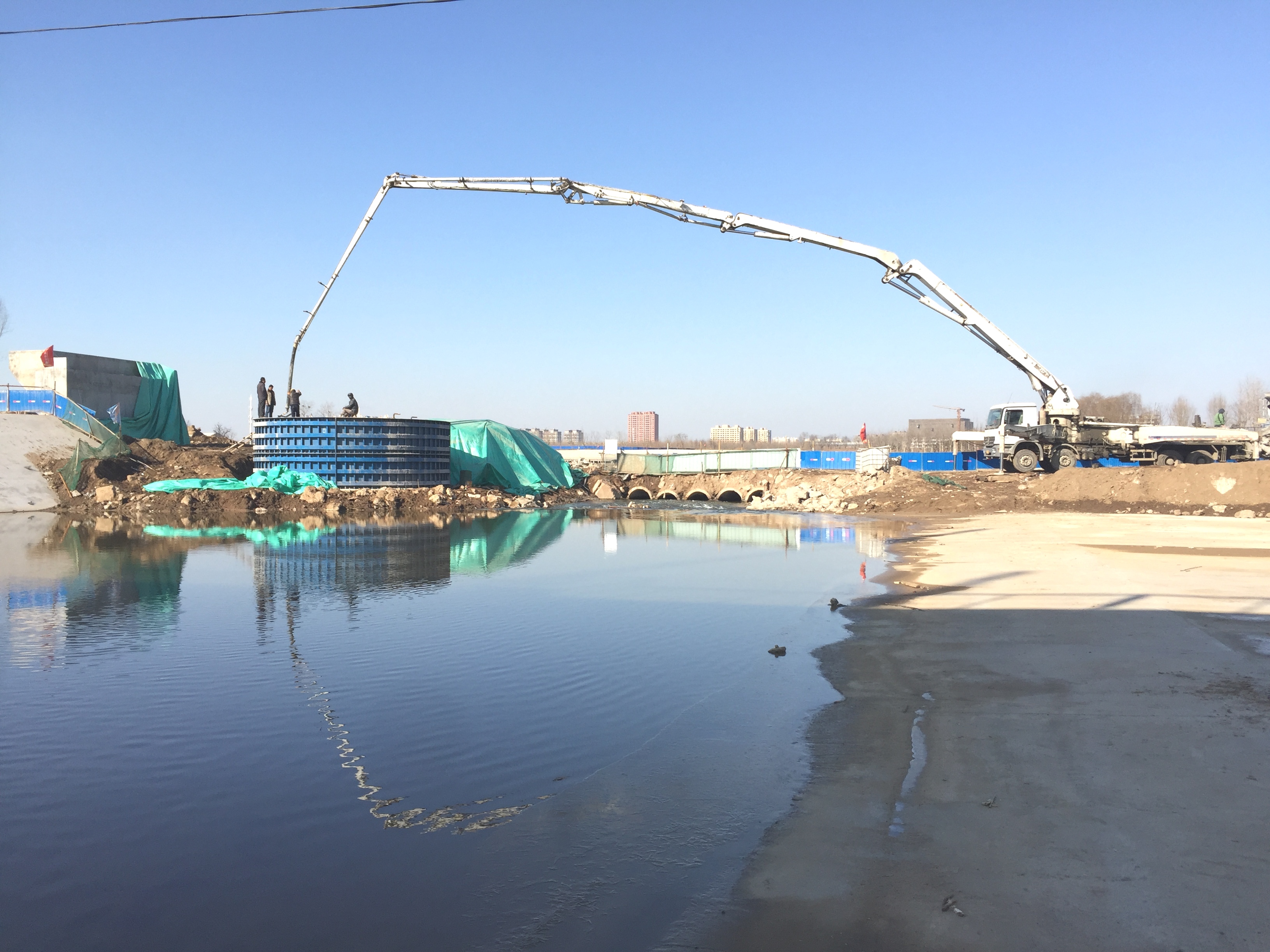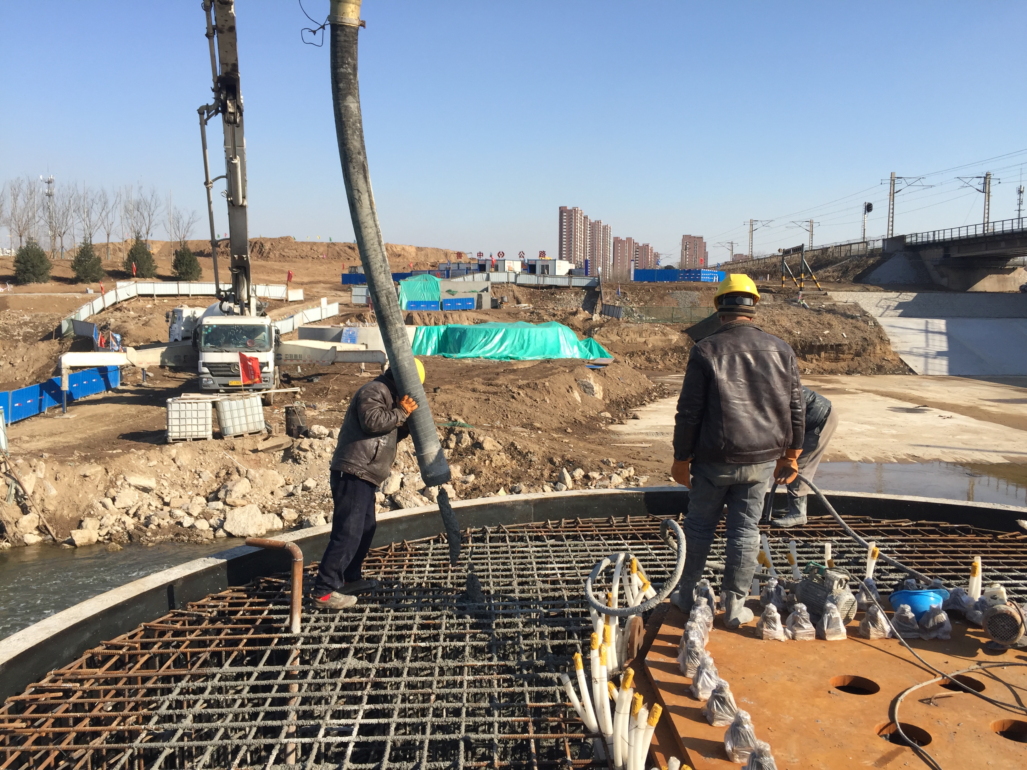 2017年1月2日,圓承臺混凝土養(yǎng)護。