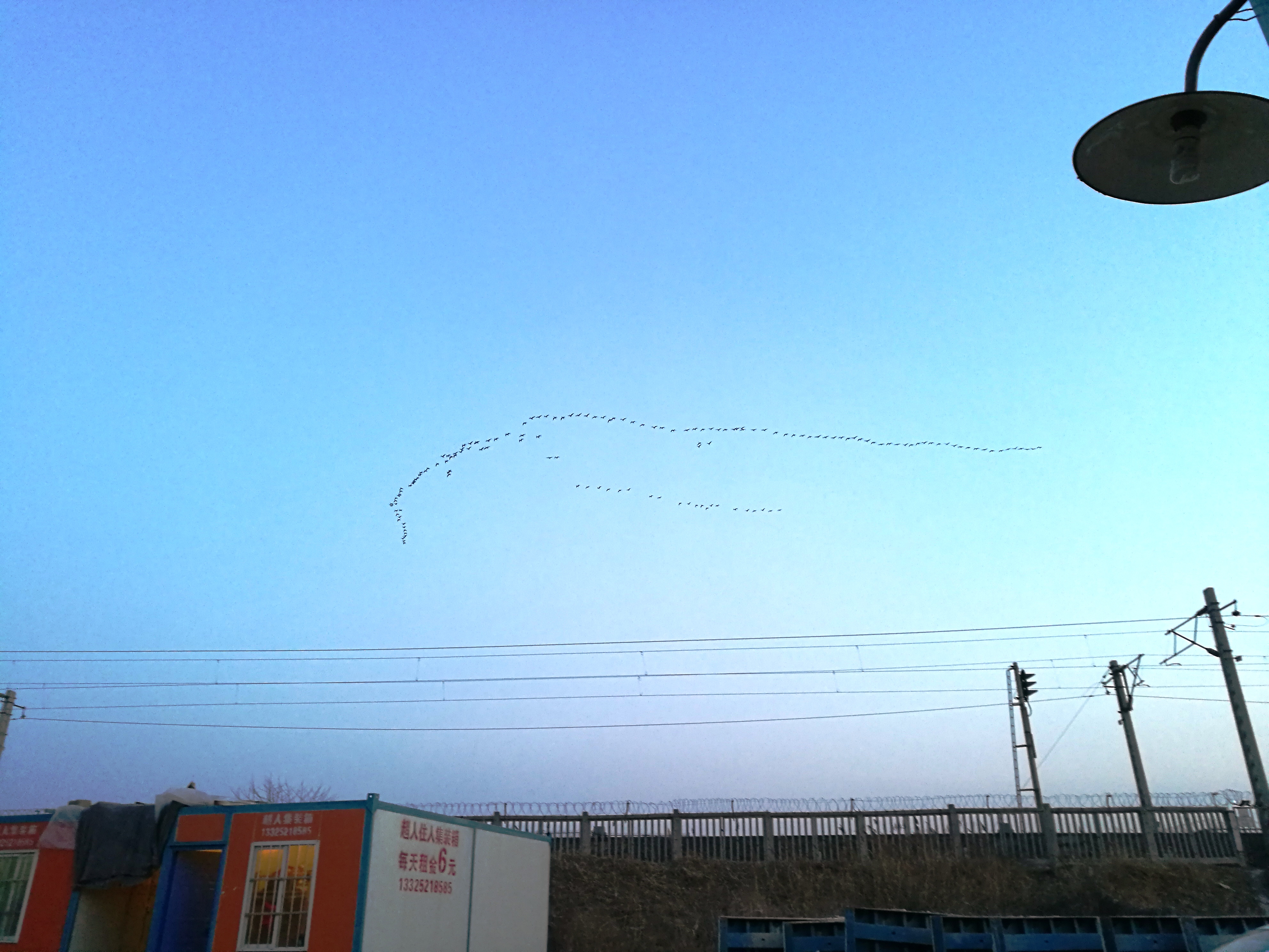 2017年2月25日落日余暉下,懸索橋迎來了北歸的大雁。