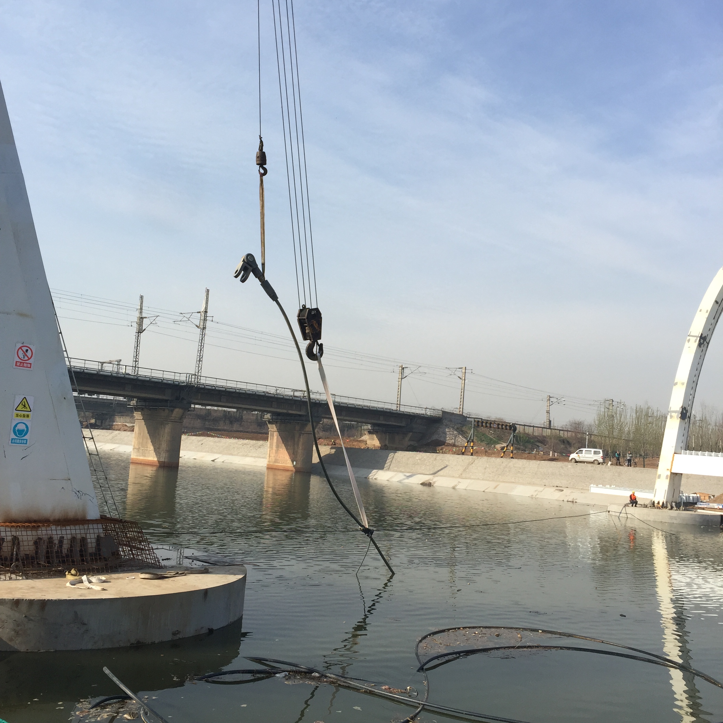 2016年12月31日,施工過程中為防止圓承臺混凝土水化熱過大而影響質量,我們增加了冷凝管。