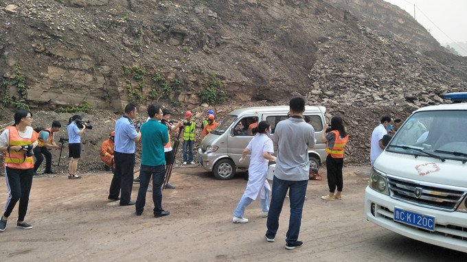模擬發(fā)生險情后,救援隊伍趕赴事故現(xiàn)場