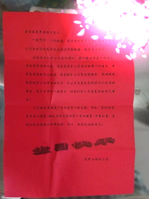 愛無形無色,可它有時卻讓大家痛徹心扉,有時又讓大家欣喜若狂,悲喜交加,可誰又說這不是一個有愛才存在的世界呢?愛不能用金錢去衡量,養(yǎng)護分公司領(lǐng)導(dǎo)能把職工的生日都記得并給大家派送禮品蛋糕賀卡,細微之處盡顯愛意,讓大家體會到團隊的溫暖,集體榮譽責(zé)任感,讓所在職工體會到愛的真正涵義,更懂得付出,我們的公路事業(yè)定會因為愛而更加美好和順利!