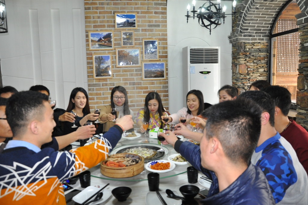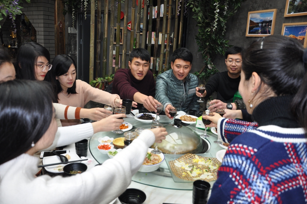 一上午的活動充實又趣味十足。意猶未盡之中,大家離開植物園區(qū),前往獨具特色的“脆肉鯇”餐廳享用午餐。走出室外,雪花已是變大了不少,這讓大家興奮不已,一路追逐著,笑鬧著。沿途經(jīng)過布滿花燈的鵲橋,大家紛紛合影留念。進入餐廳,美味的食物,蔓延的友誼,年青人們觥籌交錯,開懷暢談。幽默的自我介紹,興趣愛好的相互交流,團坐在暖暖的蒸鍋周圍,一頓飯吃的是熱火朝天。