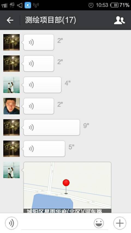 在工作當(dāng)中,我們的同事經(jīng)常根據(jù)具體情況想辦法出主意,利用平時溝通娛樂的工具解決工作中的實際困難,像大家都非常熟悉的微信,我們微信上面共享位置,我們利用導(dǎo)航地圖探討線路的走向,每當(dāng)聽到幾個人激烈的討論線路的走向,坐標(biāo)的位置等問題,我都能體會到大家對工作認(rèn)真負(fù)責(zé)的態(tài)度。我堅信只要我們心往一處想,勁往一處使,不怕困難、不斷總結(jié),不斷付出我們的智慧和汗水,我們就一定能夠順利完成所有的測繪項目,我們測繪項目部的未來也一定會是光明和燦爛的!