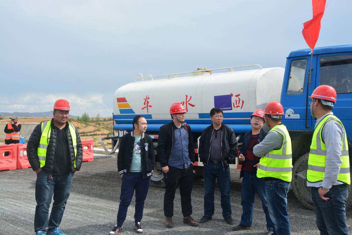 項(xiàng)目辦、管理處領(lǐng)導(dǎo)到試驗(yàn)路攤鋪現(xiàn)場(chǎng)督導(dǎo)工作