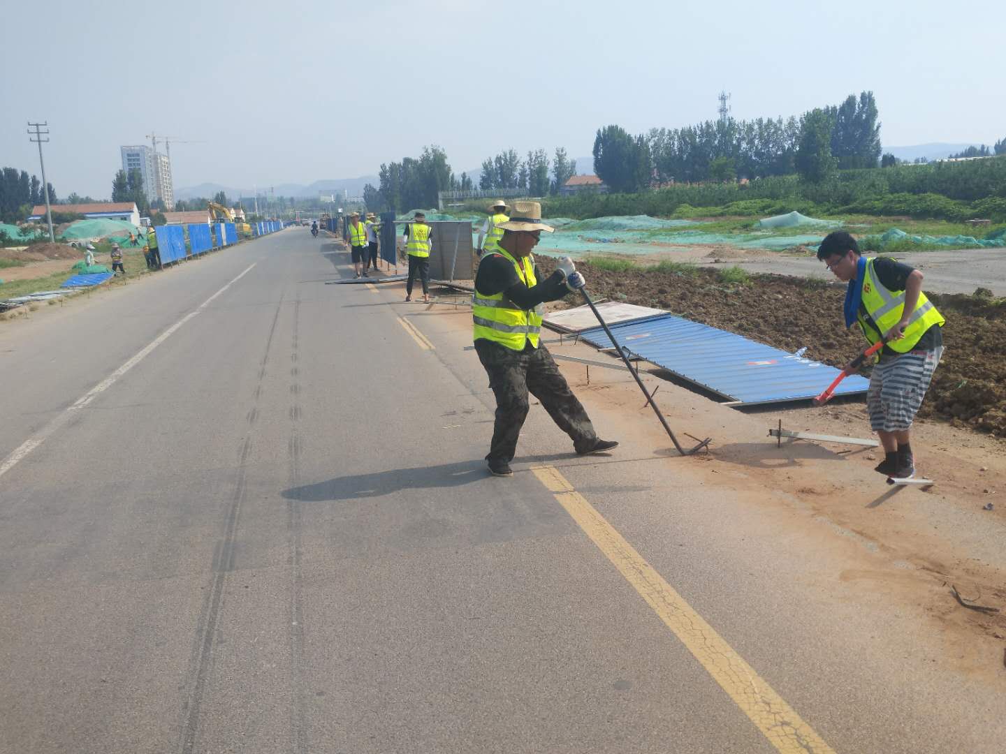 隨著施工進(jìn)度的不斷推進(jìn)以及上級(jí)點(diǎn)評(píng)日期的接近,人民路項(xiàng)目部制定了詳細(xì)的工作計(jì)劃,將每一項(xiàng)工作任務(wù)落實(shí)責(zé)任到位。項(xiàng)目部全體人員包括內(nèi)勤人員實(shí)施“全體總動(dòng)員”行動(dòng),要求大家齊上陣,在原先已經(jīng)做好各項(xiàng)工作的基礎(chǔ)上,進(jìn)一步對(duì)全線8.6公里的圍擋進(jìn)行修整維護(hù),并拆除、更換、張貼宣傳畫(huà),對(duì)危險(xiǎn)部位水馬擺放、全線垃圾清理、裸土及路基綠化帶全面覆蓋、圍擋清理等各項(xiàng)工作進(jìn)行排查和修整,在規(guī)定時(shí)間內(nèi)全部準(zhǔn)備到位,確保人民路項(xiàng)目各項(xiàng)工作合格達(dá)標(biāo)。
