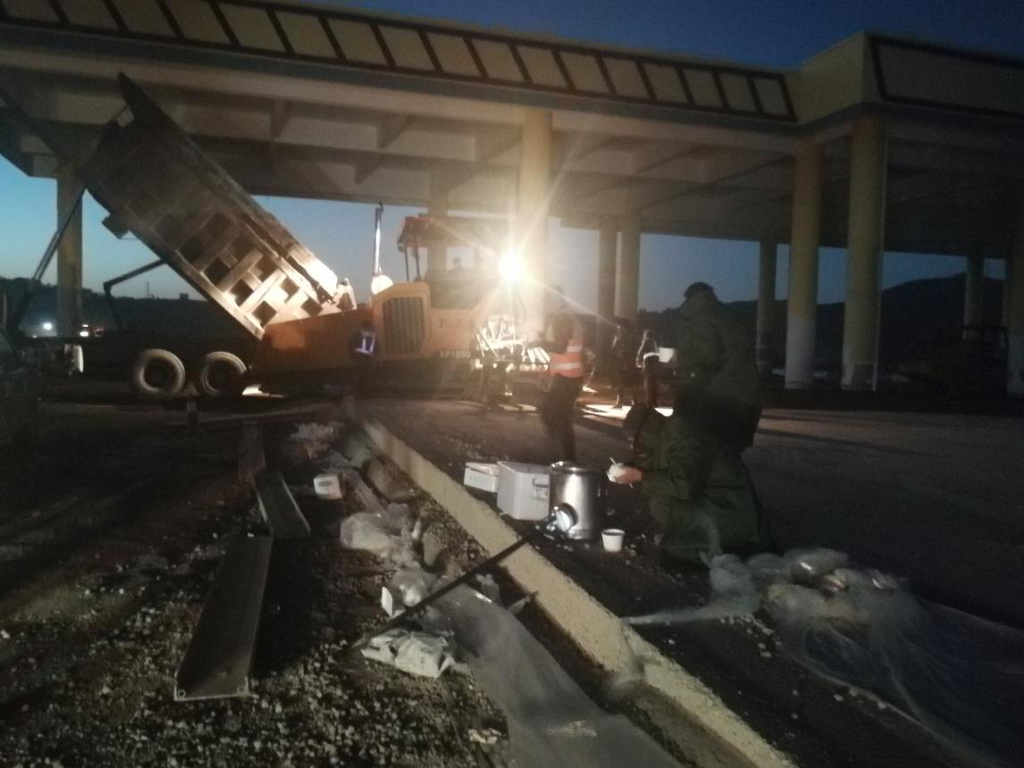 最近忙于公司的績效工作的推進(jìn),很少去工地現(xiàn)場,今晚到工地去設(shè)置標(biāo)志牌,順便跟著送飯的車輛到工地去拍下照片。到工地后先跟大家一起在施工現(xiàn)場吃飯,當(dāng)凜冽的冷風(fēng)穿透衣服吹在身上,才突然發(fā)現(xiàn),當(dāng)?shù)氐臍夂驐l件已經(jīng)變得如此的惡劣?,F(xiàn)場施工人員近一周都是凌晨兩三點(diǎn)回到項(xiàng)目部,天還沒亮就又出發(fā)了,我問他們這樣的狀態(tài)還要持續(xù)多久,“至少還得一個(gè)月”?,F(xiàn)在基層隊(duì)伍正在進(jìn)行水穩(wěn)基層的鋪筑施工,距離項(xiàng)目部25公里,飯菜送到工地,冷風(fēng)一吹,飯菜就只有余溫了,施工員們輪流過來吃飯,大家吃的匆忙,飯間簡單交流過工作后就都拿起儀器回到工作中。在刺骨的冷風(fēng)中,看著兄弟們走遠(yuǎn)的背影,心里對他們充滿佩服,心里想起一句詩:千磨萬擊還堅(jiān)勁,任爾東西南北風(fēng)!