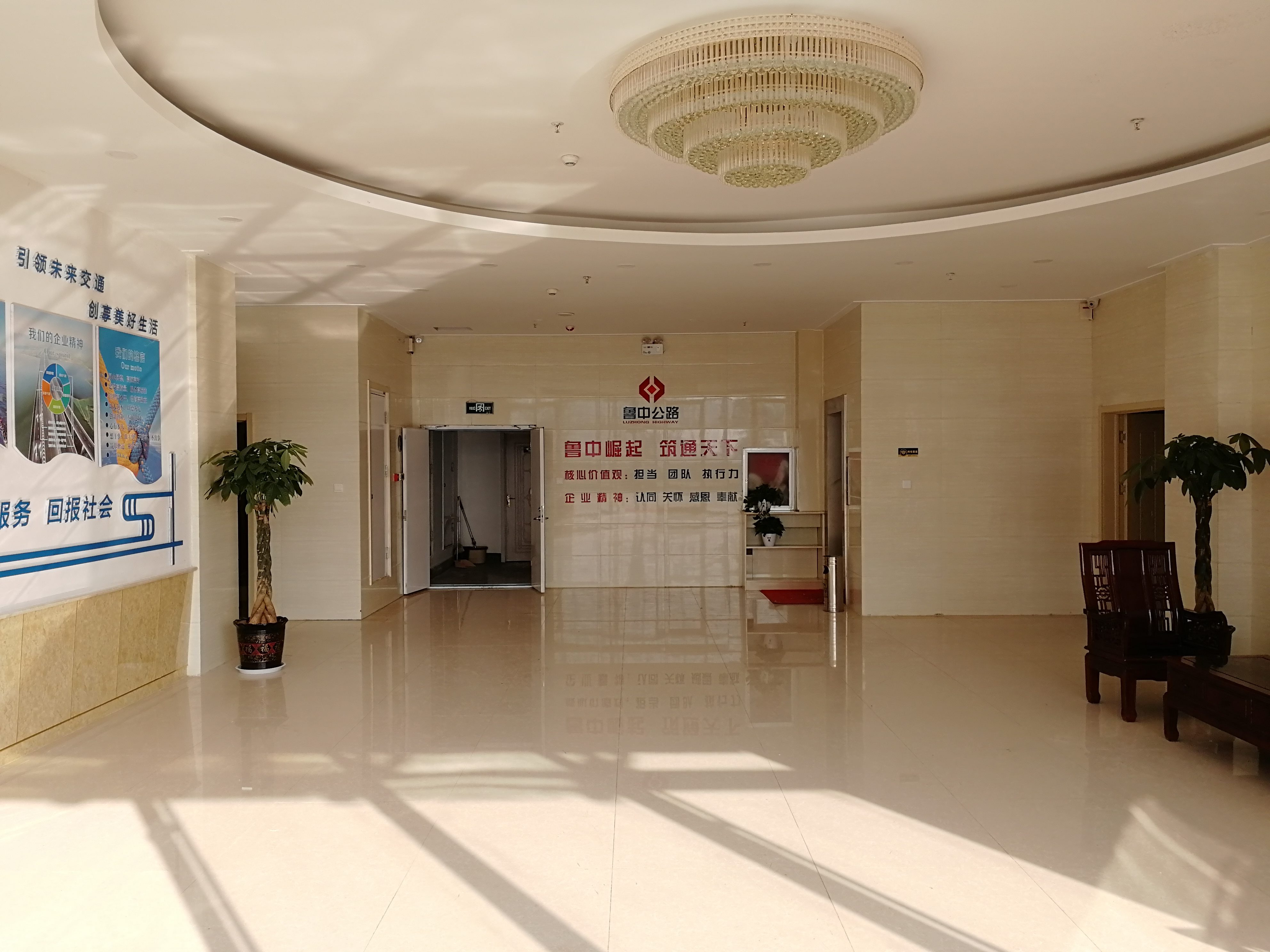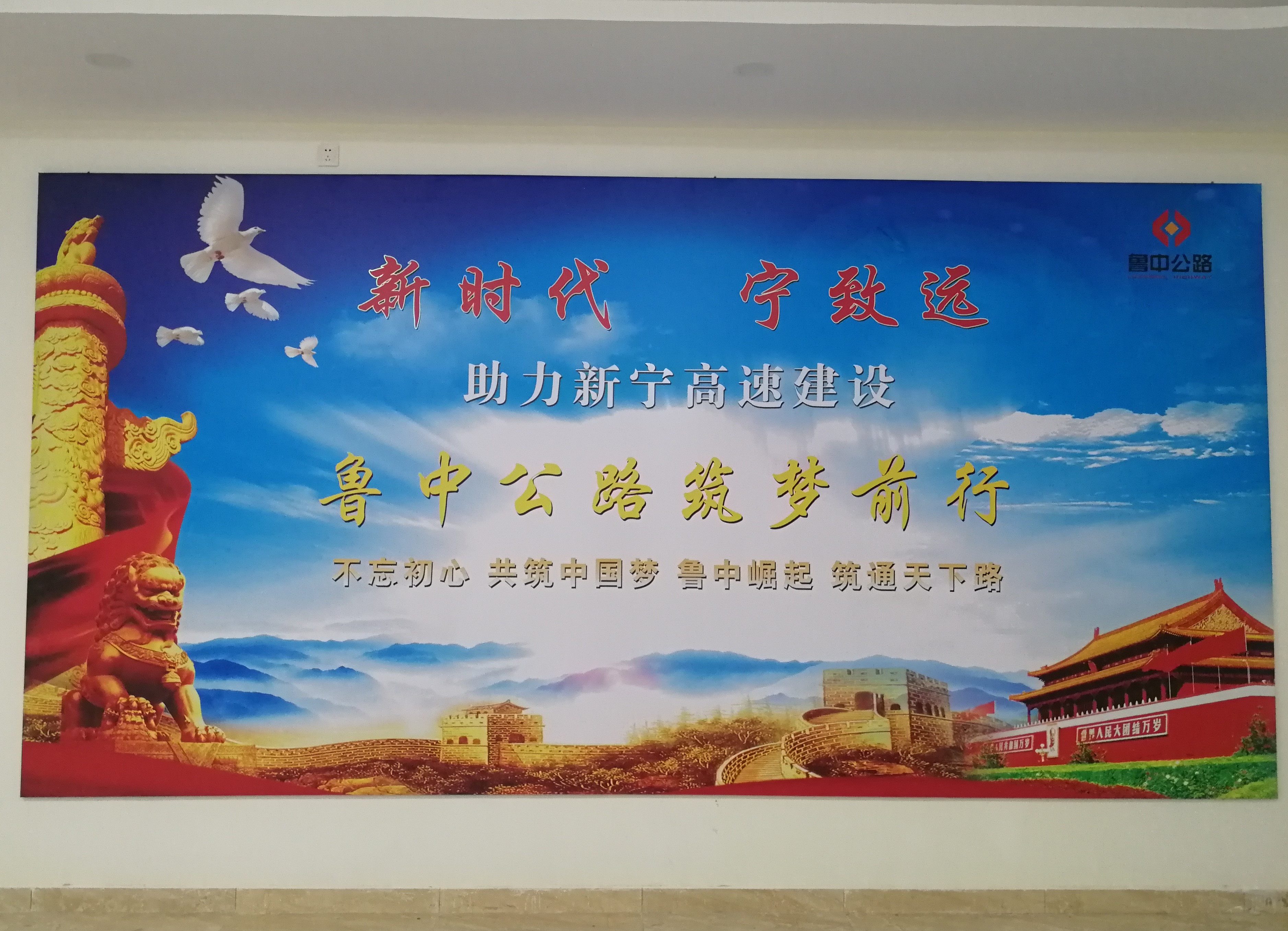 推開項目部大門,進入一樓大廳內(nèi),首先映入眼簾的是魯中公路標志及文化標語。