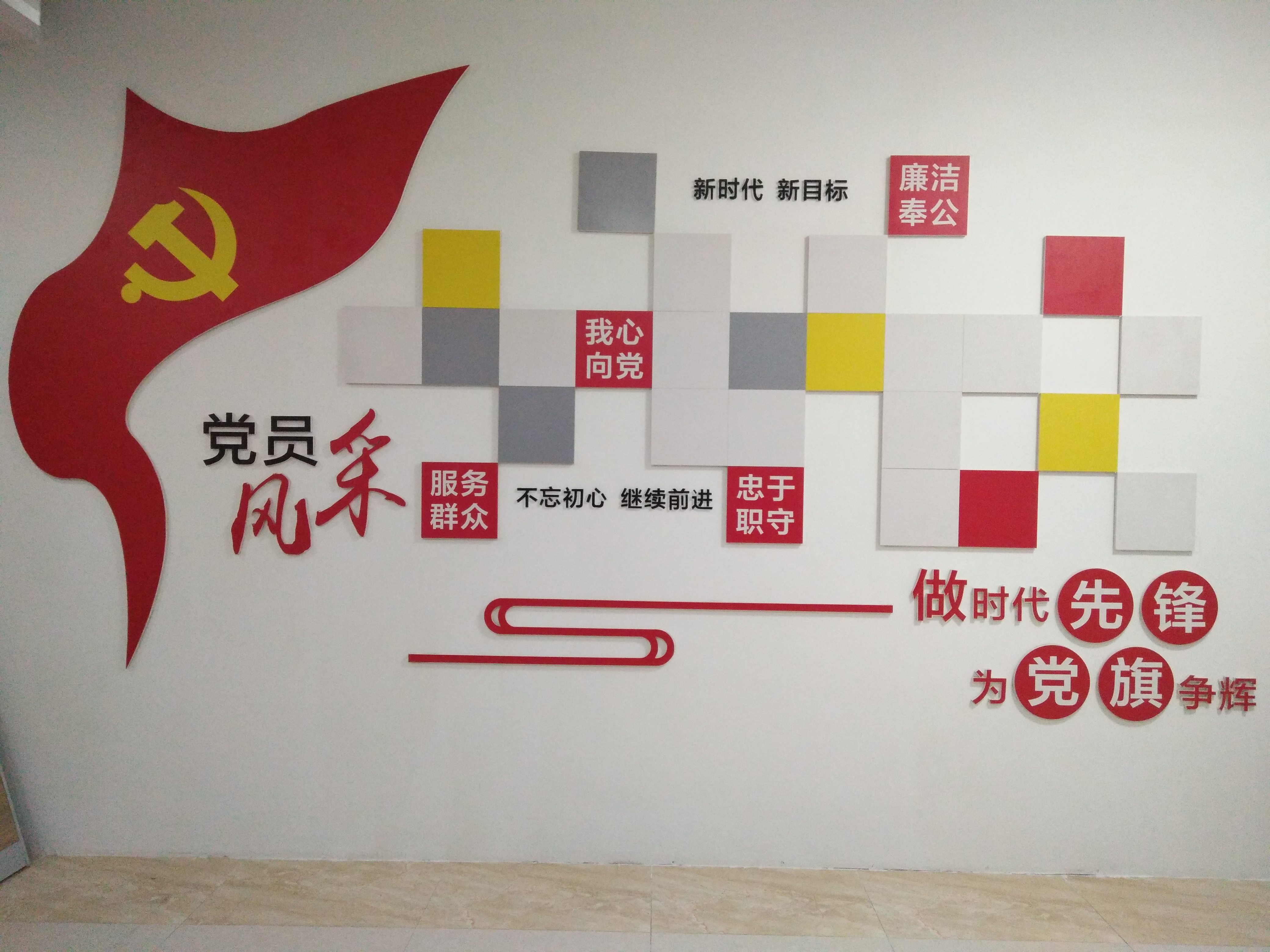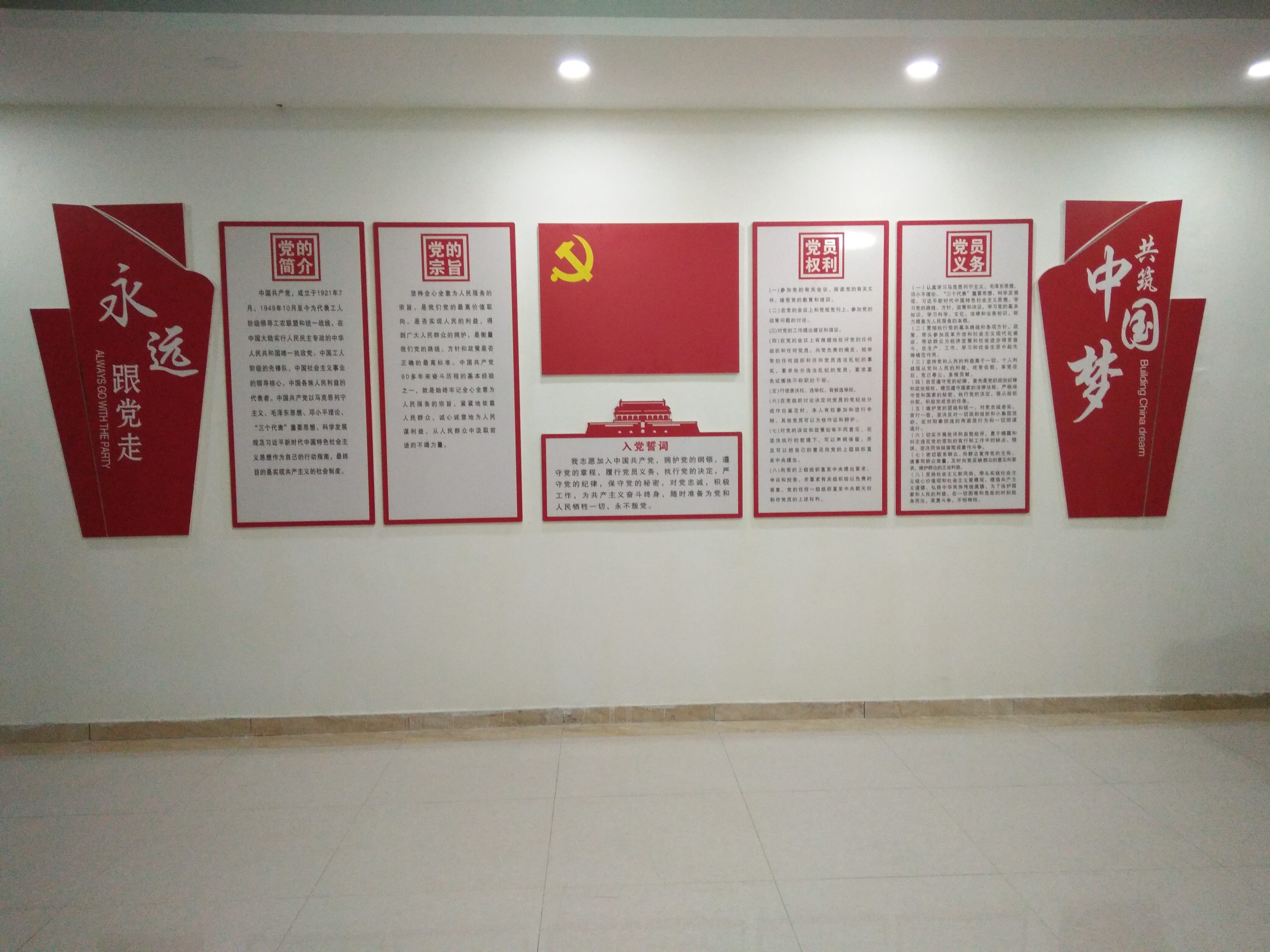 黨員活動室內(nèi)的大幅黨建宣傳圖。