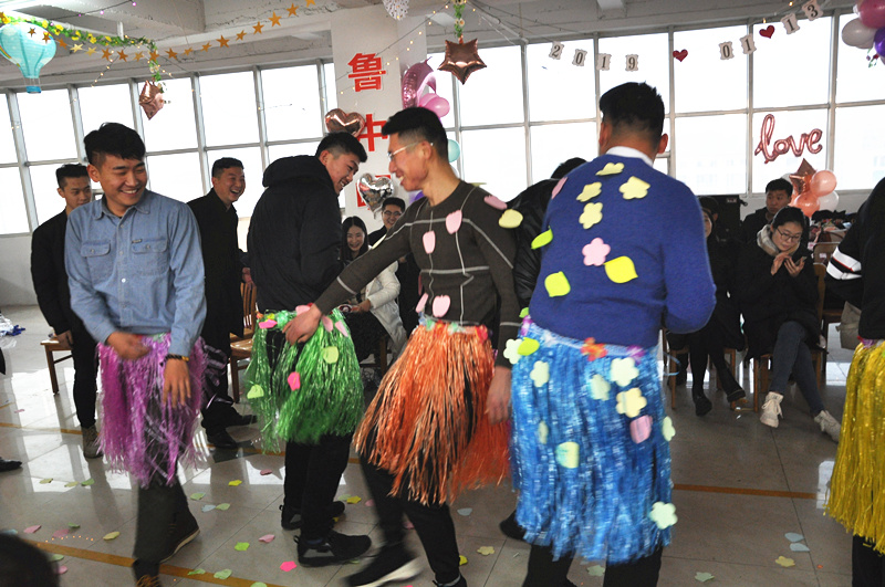 一個個游戲下來,聰明能干、呆萌踏實的小伙子們已經(jīng)打動了姑娘們的芳心,但魯中公路小伙子的身上不僅僅只有這些亮點,還有幽默、豁達、鮮活的另一面。隨著主持人的指令,手掌互動的小游戲選出了需要被懲罰的人。小伙子們主動請纓替女生受罰,身著草裙的他們開始“舞動人生”。婀娜的舞姿、妖嬈的步伐引來全場的陣陣笑聲,把整個會場氣氛推向高潮。