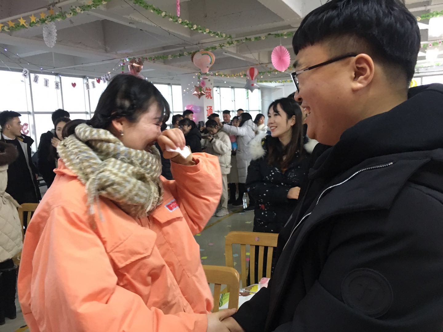13:14分,隨著全場人員的倒計時,成功開啟了本屆聯(lián)誼會寓義著“一生一世”的愛情密碼,原本陌生的彼此,解開心中的冰層,伴隨著熱情的音樂,大家圍圈而舞,先前的拘謹與羞澀,在律動中逐漸褪去,整個會場氣氛熱情高漲,一片歡聲笑語。