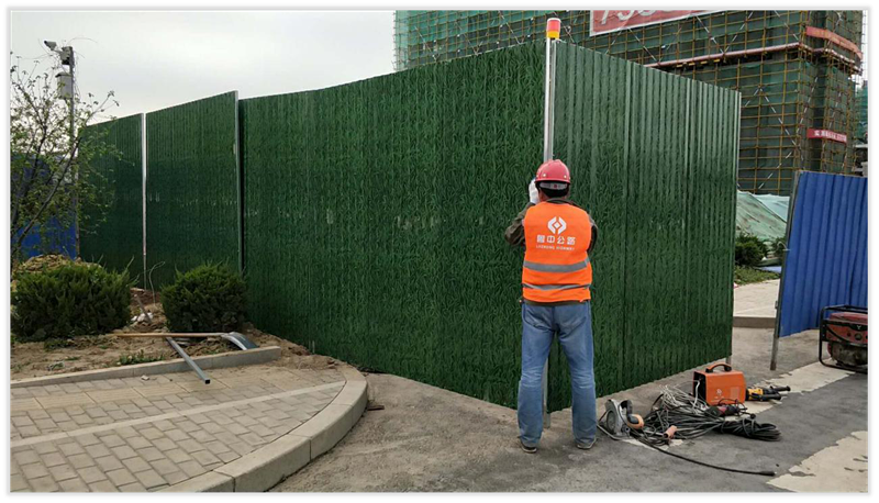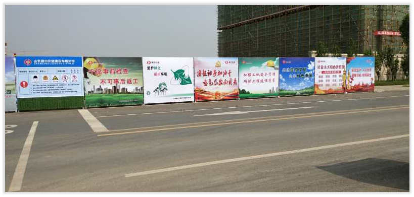 近年來(lái)山東省政府在建筑市場(chǎng)大搞生產(chǎn)安全、環(huán)境環(huán)保治理活動(dòng),淄博經(jīng)開(kāi)區(qū)建設(shè)局要求在地面和空中都不能看到工地有揚(yáng)塵產(chǎn)生,建筑生產(chǎn)環(huán)境必須符合整齊、安全、環(huán)保的要求。魯中公路淄博經(jīng)開(kāi)區(qū)道路工程項(xiàng)目,及時(shí)采取有效措施,既符合政府新標(biāo)準(zhǔn)又突出山東魯中公路文化建設(shè)的主線,適時(shí)更換2.75m×2.5m規(guī)格綠植畫(huà)面彩鋼圍擋,設(shè)制有山東魯中公路建設(shè)有限公司形象的臨時(shí)大門(mén),把環(huán)保、安全、時(shí)政宣傳、公益廣告圖案等安裝到圍擋上,即節(jié)約制作與安裝成本,又美化了施工圍擋,還為魯中公路文化建設(shè)做了形象宣傳。