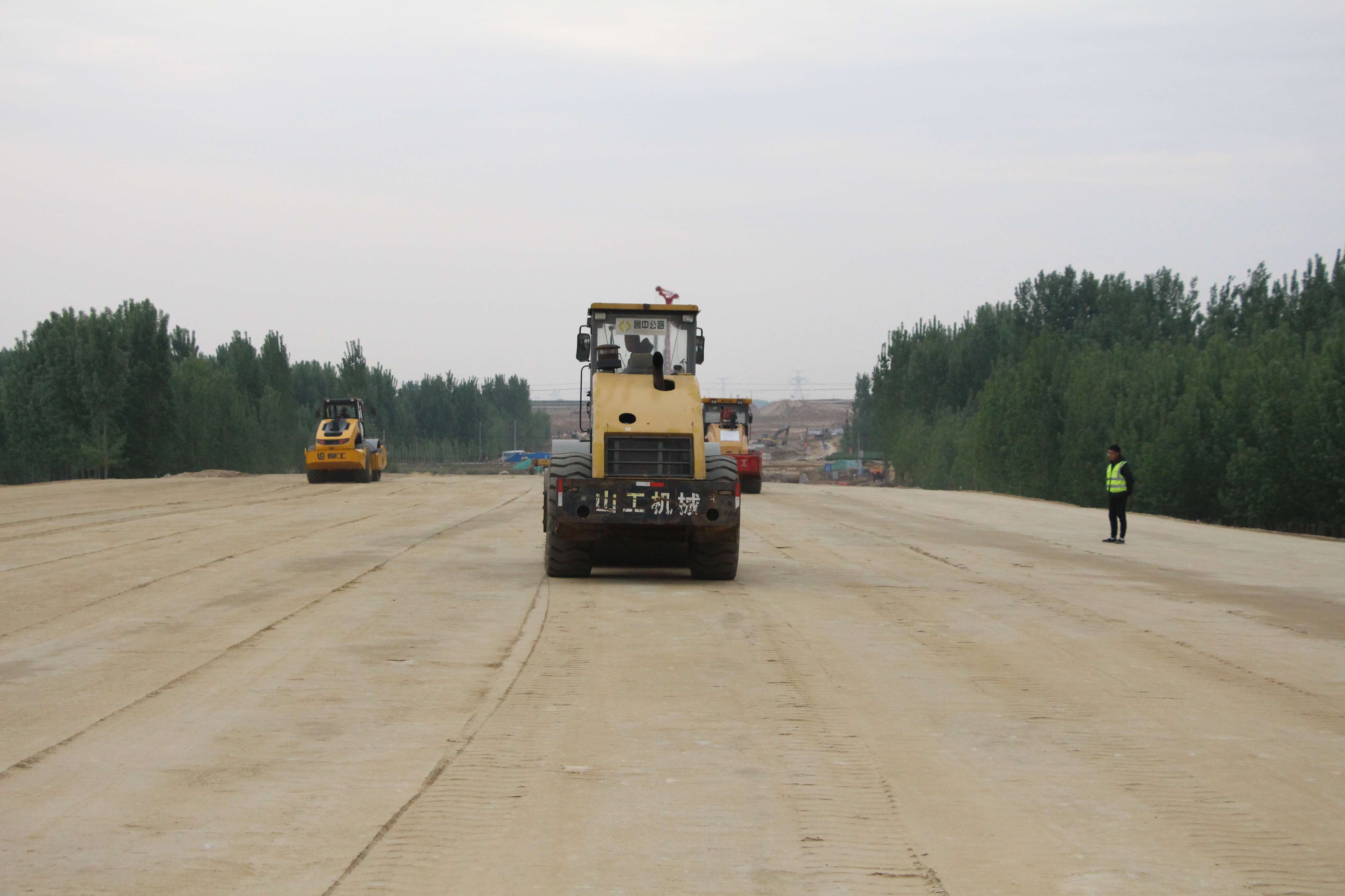 K51+100處,施工員李吉祥、王宏慶正指揮機(jī)械人員進(jìn)行路基填筑、碾壓。