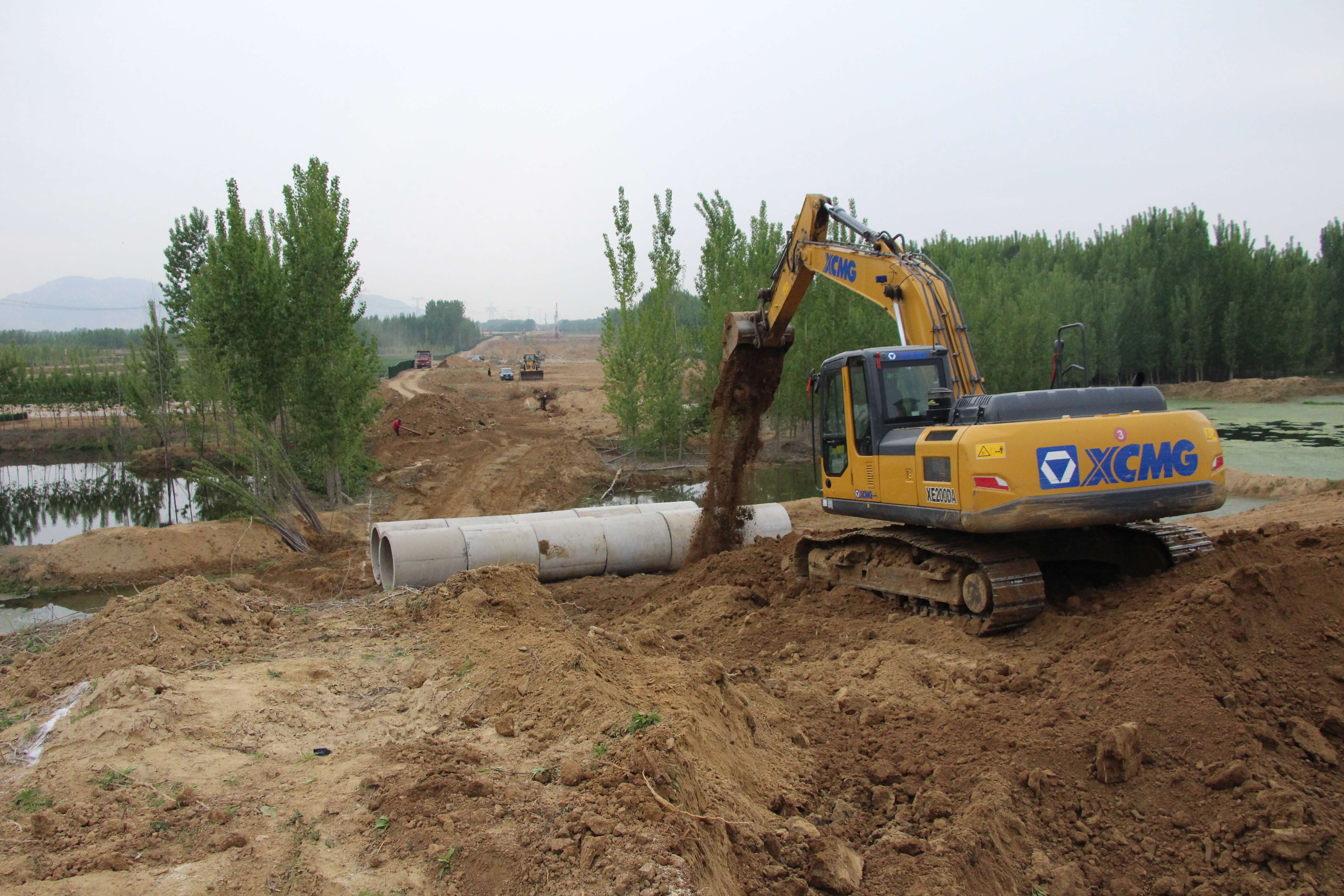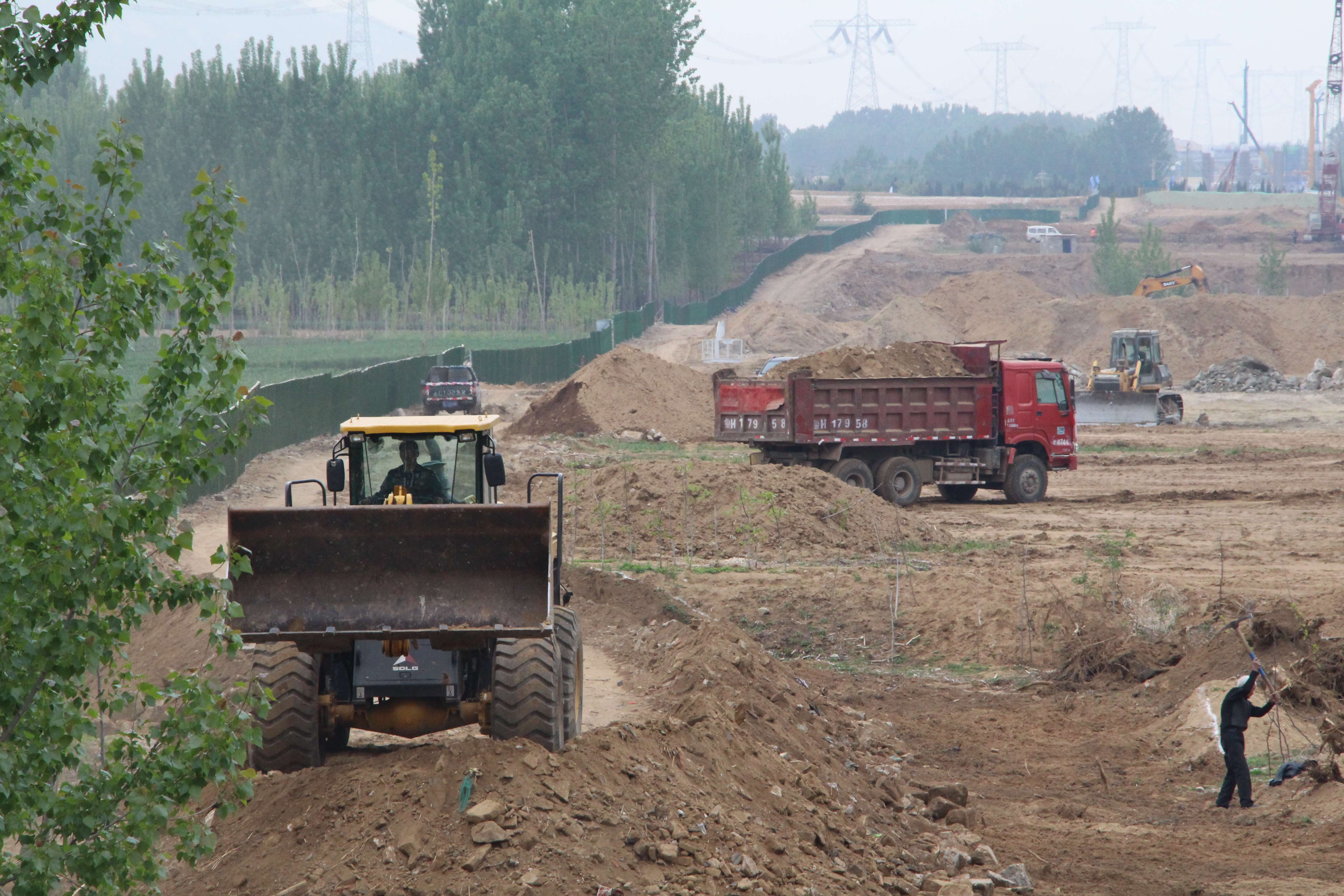 高鐵西側(cè)k57+500附近,現(xiàn)場(chǎng)負(fù)責(zé)人楊新剛正和施工隊(duì)一道進(jìn)行便道施工。