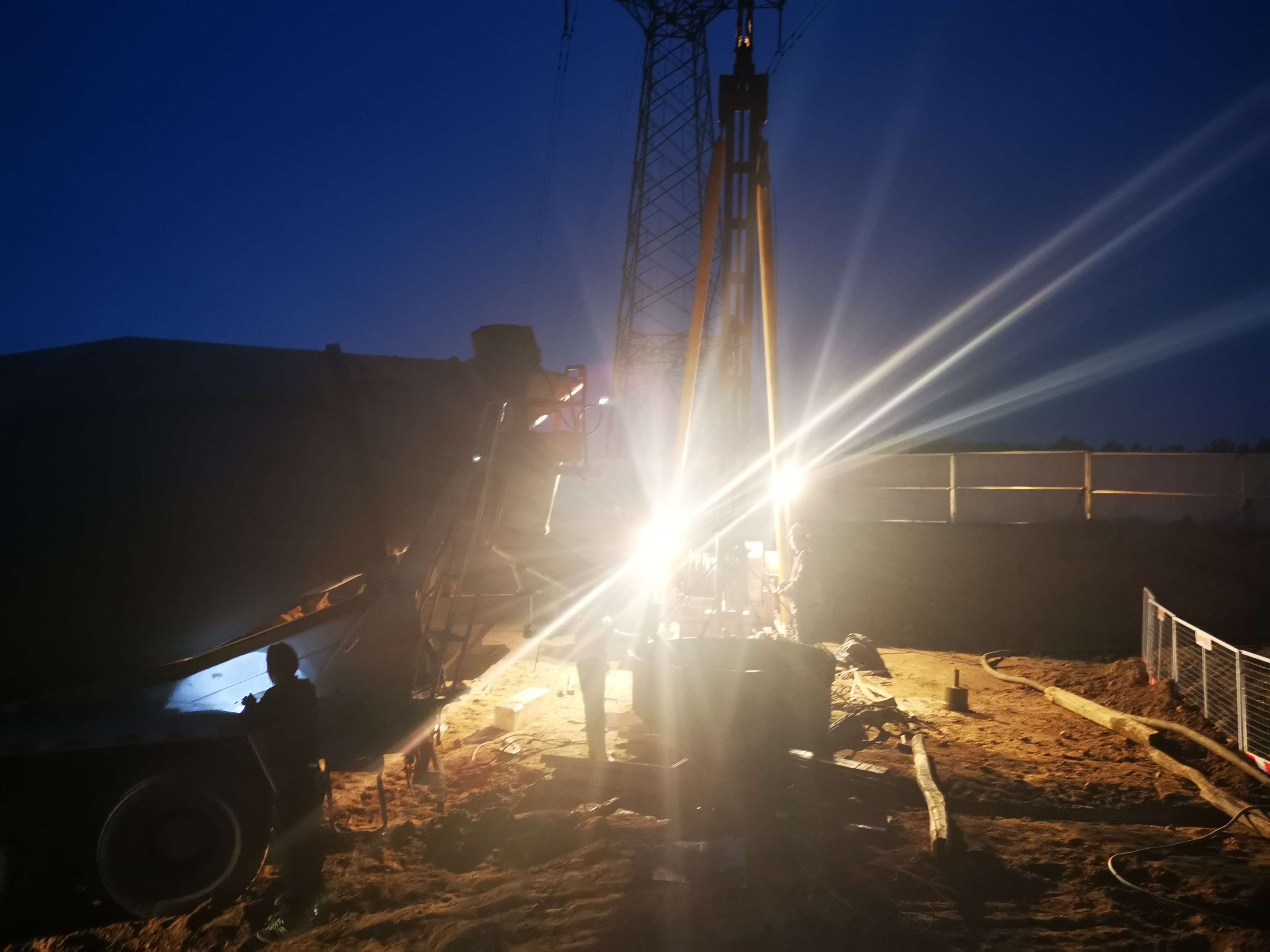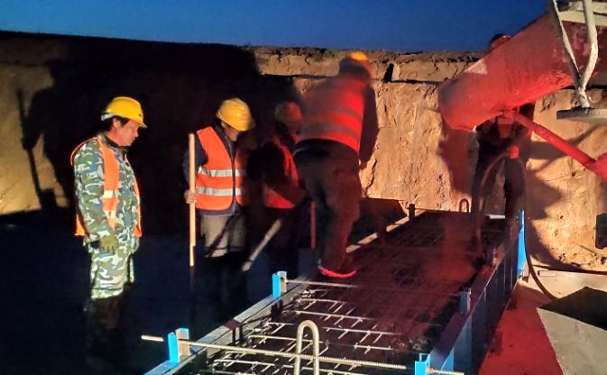 由于今晚還有樁基灌注任務(wù),范廣金、趙祥坤、劉亞坤等幾名現(xiàn)場(chǎng)管人員匆匆拔了幾口飯便又返回了現(xiàn)場(chǎng),隨著一車車混凝土運(yùn)到施工現(xiàn)場(chǎng),伴著一根根樁基、系梁、一片片涵身順利澆灌完畢,時(shí)間也已來到了晚上22:00。