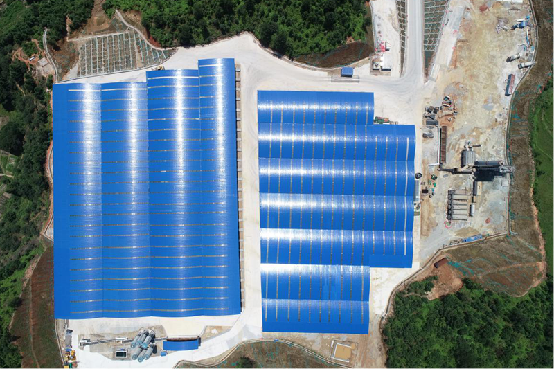 拌和站選址后,項目部一直致力于綜合場區(qū)的品質(zhì)化工程建設。為應對贛州地區(qū)多雨連陰的天氣,響應項目辦的政策要求,我部料倉均采用彩鋼瓦覆蓋,防雨防曬嚴格控制含水率,并在側面設置圍擋防護。場區(qū)道路及料池均采用混凝土進行硬化,料倉內(nèi)寬敞明亮,防水除塵。