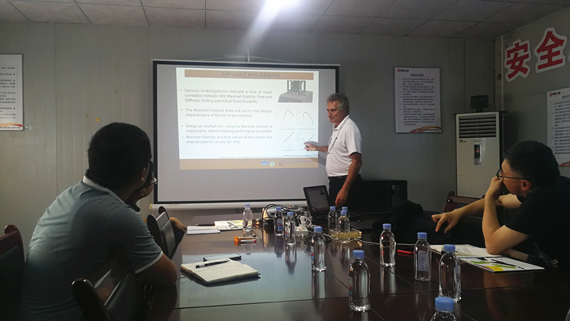 2019年7月15日意大利公路工程技術(shù)專家菲利普先生與市交通事業(yè)服務(wù)中心養(yǎng)護(hù)科,針對(duì)目前淄博重載交通、長縱坡和高溫季節(jié)等極易出現(xiàn)車轍問題,在山東魯中公路市政工程分公司進(jìn)行調(diào)研與工藝學(xué)術(shù)探討。