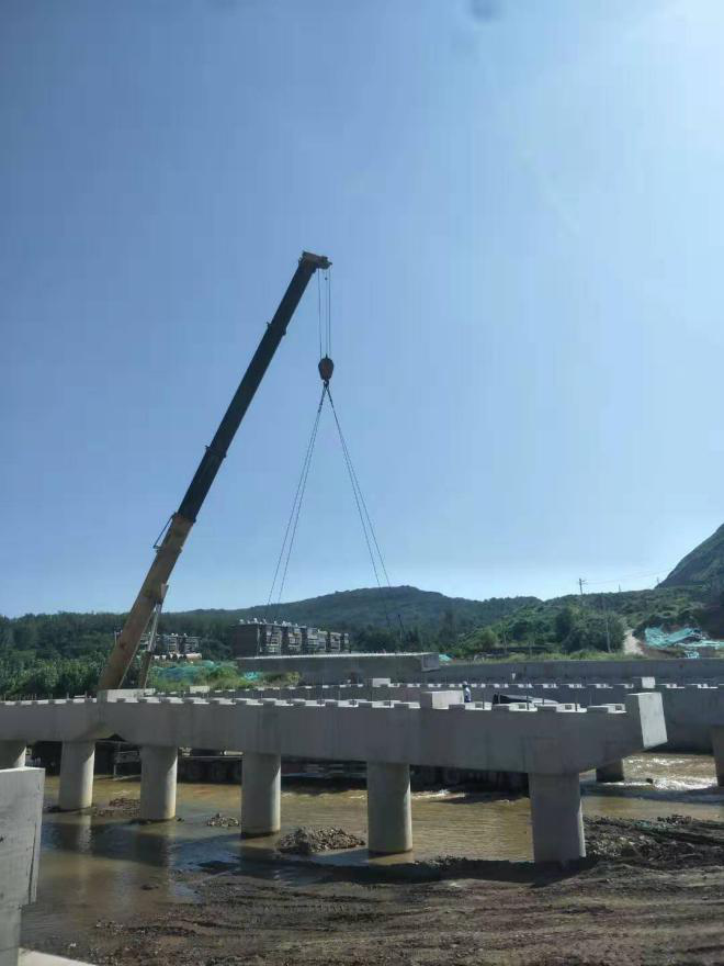 博山區(qū)北山路孝婦河橋第一片預(yù)應(yīng)力空心板梁成功架設(shè)