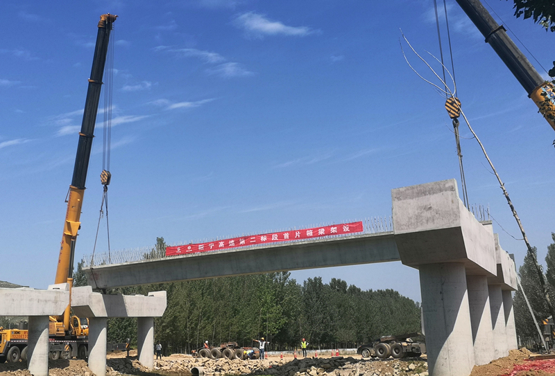 新寧二標(biāo)首片箱梁成功架設(shè)就位