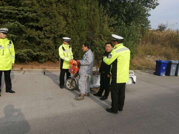 高速交警趕到后對(duì)電動(dòng)三輪車(chē)司機(jī)進(jìn)行批評(píng)教育