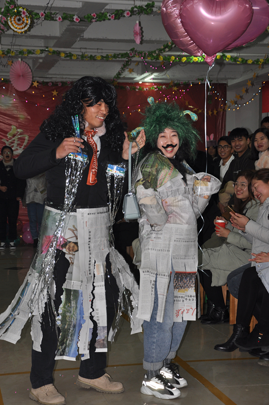本屆聯(lián)誼會(huì)公司早早著手,早早行動(dòng),游戲項(xiàng)目都是千揀萬選選出來的,雖已料到現(xiàn)場(chǎng)氣氛肯定激情飛揚(yáng),可真到實(shí)踐之時(shí),還是讓大家樂的東倒西歪。“支援前線”、“角色互換”等環(huán)節(jié)充分展現(xiàn)了當(dāng)代年輕人高效的執(zhí)行力及無限的創(chuàng)造力。支援前線活動(dòng)將會(huì)場(chǎng)氣氛推向高潮,當(dāng)主持人一聲令下要小組女生一只鞋子、一只襪子時(shí),女生們立即行動(dòng),毫不退縮;當(dāng)主持人要小組男生一件襯衣時(shí),穿襯衣的小伙伴還在發(fā)懵,但襯衣已瞬間被剝走了。角色互換無疑成為整場(chǎng)活動(dòng)的小太陽,人人腦洞大開,報(bào)紙、汽球、假發(fā)等小物件派上大用場(chǎng),十分鐘的化妝時(shí)間后,展現(xiàn)出來的風(fēng)采絕不亞于維密走秀,無論是氣場(chǎng)還是喝彩聲,讓整個(gè)現(xiàn)場(chǎng)都狂熱起來。