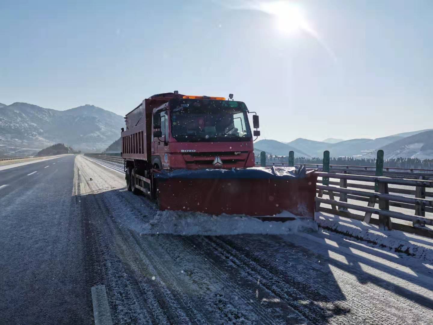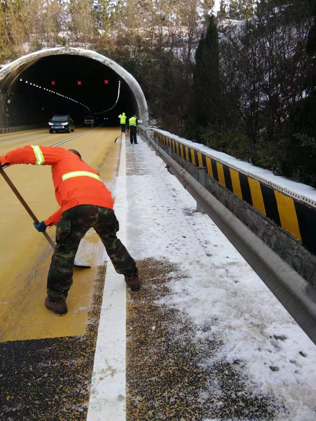 針對今年首個暴雪藍色預警,我項目部高度重視,在接到除雪防滑預警的第一時間部署開展除雪防滑工作,與業(yè)主等養(yǎng)護部門聯(lián)動協(xié)調(diào),及時發(fā)布除雪防滑工作信息。按照業(yè)主除雪防滑技術指南要求徹夜開展除雪防滑工作,我項目部采取了撒布融雪劑、機械鏟雪、人工清雪等措施,并對橋梁、隧道、陡坡、震蕩標線等重點地段進行重點防控,切實做好除雪防滑工作。