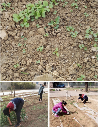 到了監(jiān)理處,看到院子里確實(shí)不少草也挺高了,還拿著大剪刀剪了剪拔高的草,不錯(cuò),還挺好用的。沒一會(huì)監(jiān)理處的人來了,領(lǐng)著我們?nèi)ズ笤?,后院是一片菜園子,原來是拔菜地里的草,大剪子是用不到了。人家告訴我們?cè)趺窗尾?。我蹲下看著綠油油的菜或者草,傻傻分不清楚,人家說這是黃瓜秧苗,那個(gè)就是草,可我看著咋都覺著一個(gè)樣。突然想起老公之前說,你們城市奧特曼是體會(huì)不到我們農(nóng)村葫蘆娃在麥地長(zhǎng)大的樂趣的,一個(gè)囧字涌上心頭,終于分清了黃瓜秧苗和草的區(qū)別。好在我們司機(jī)之前去拔過野菜,車上有兩把鏟子,拔草的活頓時(shí)輕松了不少,當(dāng)然再輕松也抵不過工作量的大。
