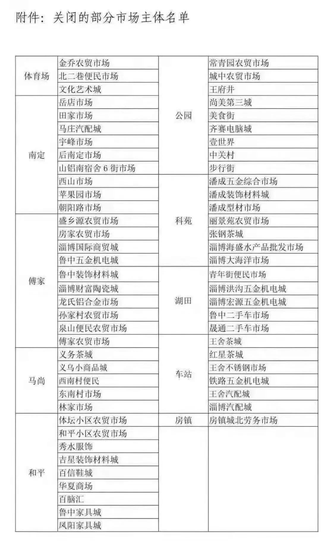 淄博市張店區(qū)將關(guān)閉64個市場主體 營業(yè)時間不早于2月底