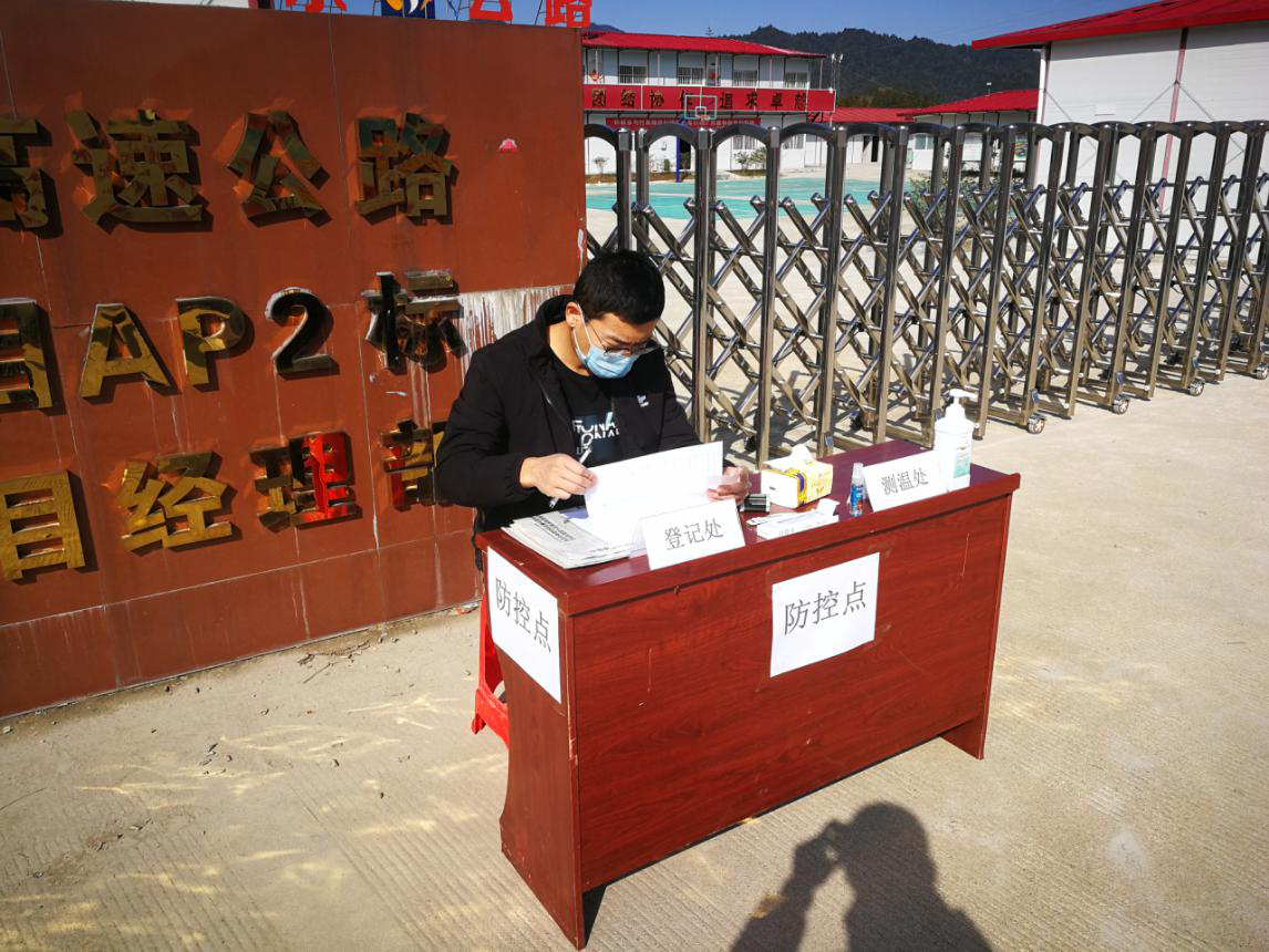 在項(xiàng)目部門(mén)口設(shè)置疫情防控點(diǎn),項(xiàng)目部職工輪流值班登記、測(cè)量體溫,嚴(yán)格控制人員進(jìn)出