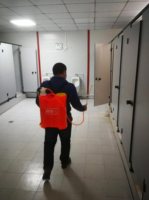 值班人員每天上午下午各對(duì)項(xiàng)目部進(jìn)行1次全方位消毒