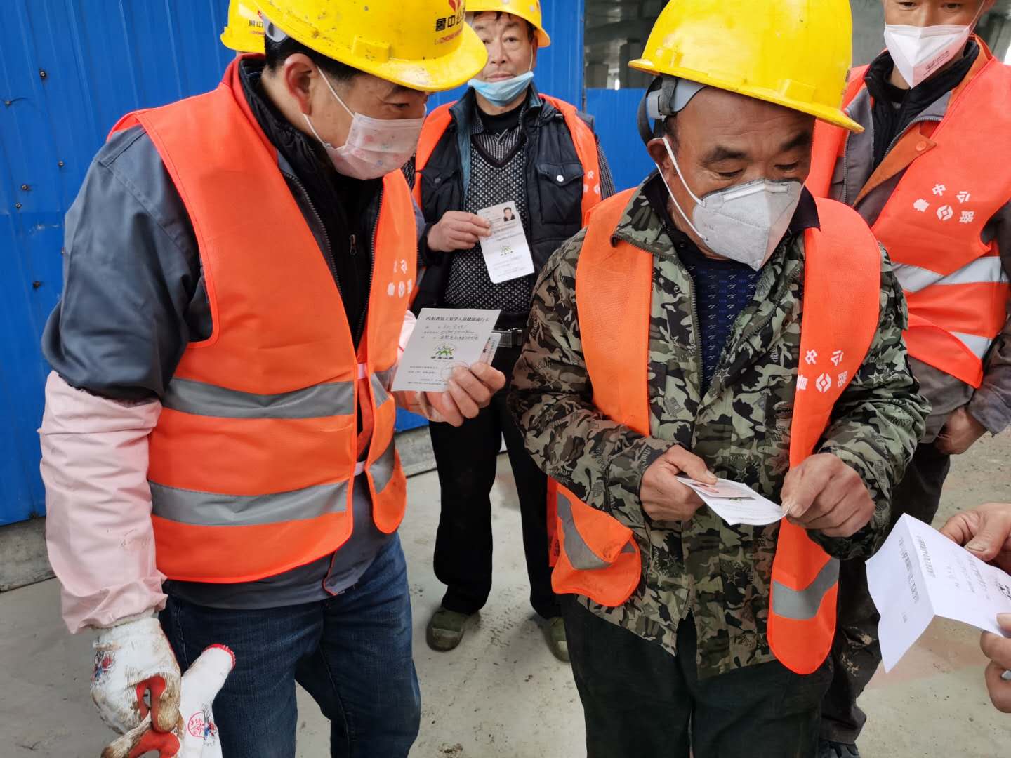 人員進(jìn)場按要求檢查健康證、測(cè)體溫、檢查生活區(qū)消毒情