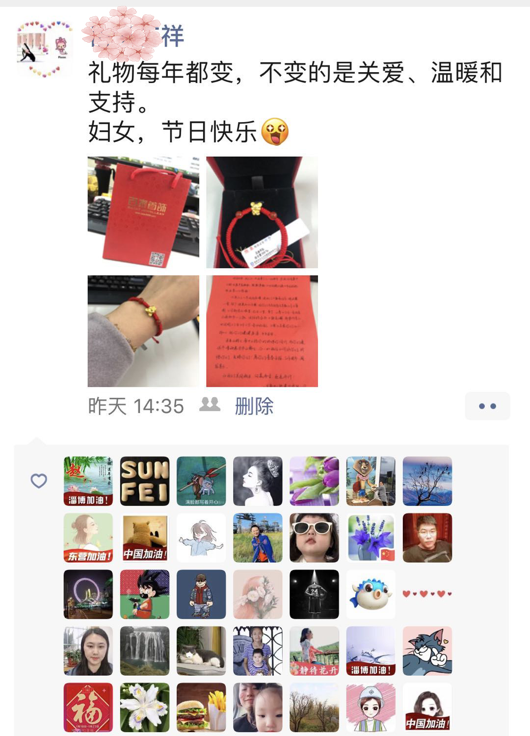今年公司為女員工們準(zhǔn)備的節(jié)日禮物是一串寓意著吉祥平安的足金鼠轉(zhuǎn)運珠手鏈,在這個特殊日子中,寄托了公司對每位女員工的祝福:“數(shù)(鼠)這些美麗的姑娘們最健康!最幸福!”