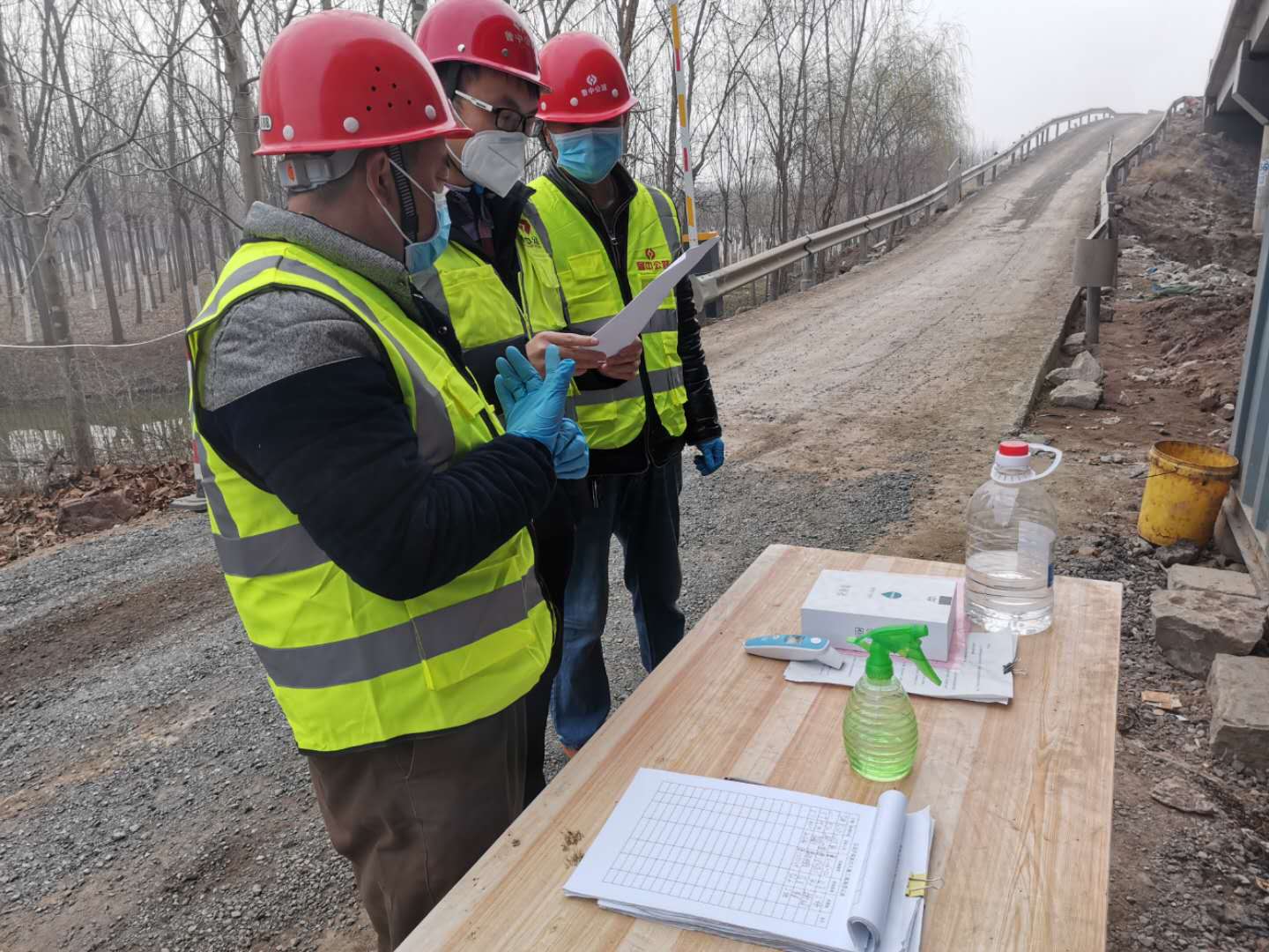 對(duì)施工人員口罩佩戴及體溫檢測(cè)表填寫情況進(jìn)行檢查
