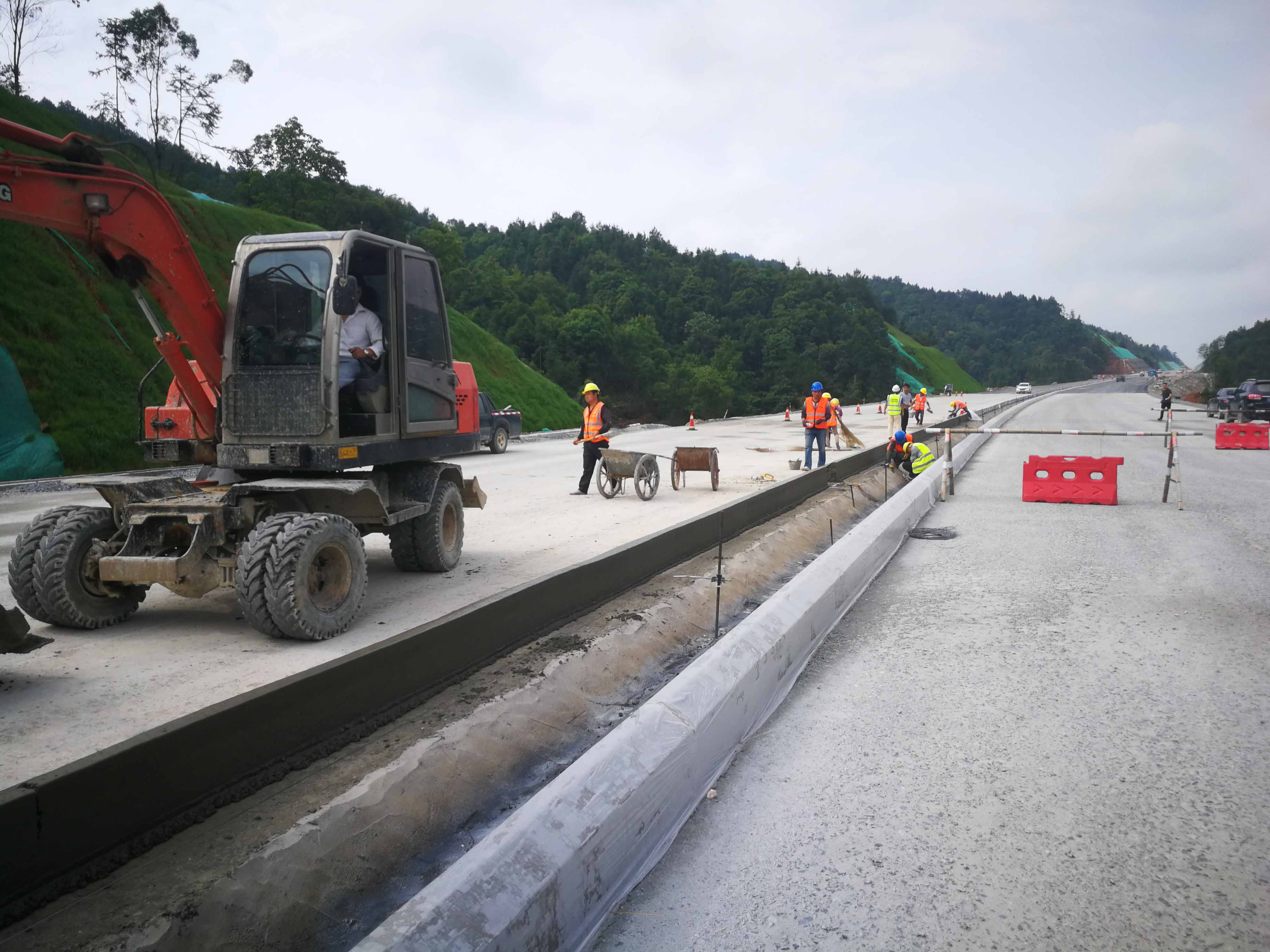 為保證路緣石及縱向排水溝施工進(jìn)度和質(zhì)量,我部采用混凝土滑模施工工藝進(jìn)行路緣石和縱向排水溝施工鋪筑。為了確定滑膜施工機(jī)具的適應(yīng)性及施工工藝,為以后大面積施工提供經(jīng)驗(yàn)及其相關(guān)數(shù)據(jù),我標(biāo)段在主線K54+000-K54+340處進(jìn)行了路緣石試驗(yàn)段施工,施工長(zhǎng)度為340m。試驗(yàn)室通過多次試驗(yàn)確定最佳生產(chǎn)配合比,項(xiàng)目部組織相關(guān)的管理、技術(shù)及施工人員對(duì)設(shè)計(jì)圖紙、工程數(shù)量等進(jìn)行了復(fù)核,熟悉設(shè)計(jì)文件,并召開了技術(shù)、安全、環(huán)保交底會(huì)。相關(guān)技術(shù)負(fù)責(zé)人在施工現(xiàn)場(chǎng)對(duì)現(xiàn)場(chǎng)施工人員進(jìn)行了詳細(xì)的技術(shù)、安全、環(huán)保交底,包括施工分組、工作職責(zé),質(zhì)量控制標(biāo)準(zhǔn)、施工注意事項(xiàng)等。