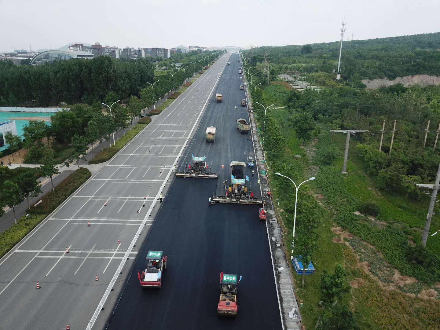 2020年6月10日,隨著中潤(rùn)大道與花山路口附近最后一臺(tái)瀝青混凝土攤鋪機(jī)的撤場(chǎng),由山東魯中公路建設(shè)有限公司第三工程公司承建的中潤(rùn)大道七標(biāo)段已順利完成機(jī)動(dòng)車(chē)道瀝青路面施工任務(wù),領(lǐng)跑全線七個(gè)標(biāo)段!