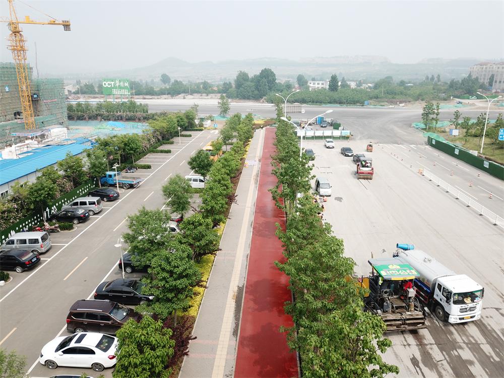 中潤(rùn)大道非機(jī)動(dòng)車(chē)道彩色瀝青路面的建成將會(huì)成為淄博主城區(qū)一道亮麗的風(fēng)景線。而為了確保該風(fēng)景線的工程質(zhì)量,第三工程公司與中潤(rùn)大道項(xiàng)目部也是高度重視,相關(guān)負(fù)責(zé)人積極進(jìn)行材料考察,且高標(biāo)準(zhǔn)、嚴(yán)要求地進(jìn)行了彩色瀝青試驗(yàn)段施工,且試驗(yàn)段成果獲得了業(yè)主及監(jiān)理單位的一致好評(píng)。