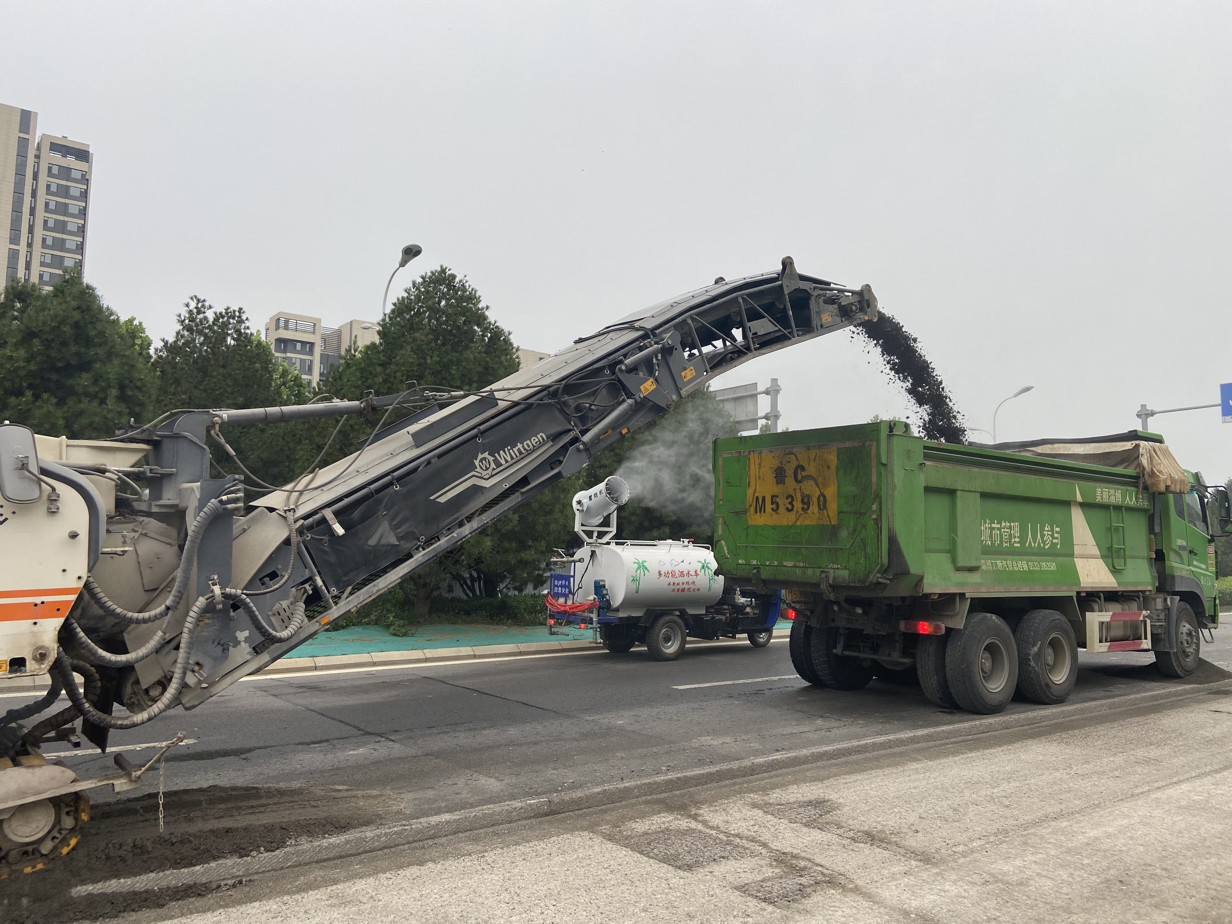 聯(lián)通路老路面防揚塵濕法銑刨作業(yè)