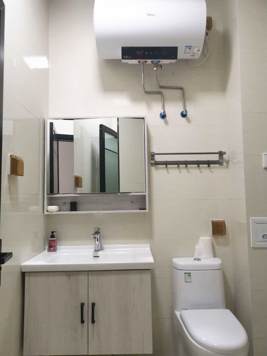 房間內(nèi)被褥、床單等生活用品,樣樣都有;衣柜、鞋柜、儲(chǔ)物柜,柜柜齊全;獨(dú)立衛(wèi)浴,無(wú)線寬帶,觀景陽(yáng)臺(tái),一應(yīng)俱全,真正實(shí)現(xiàn)了“酒店式公寓,員工拎包入住”。