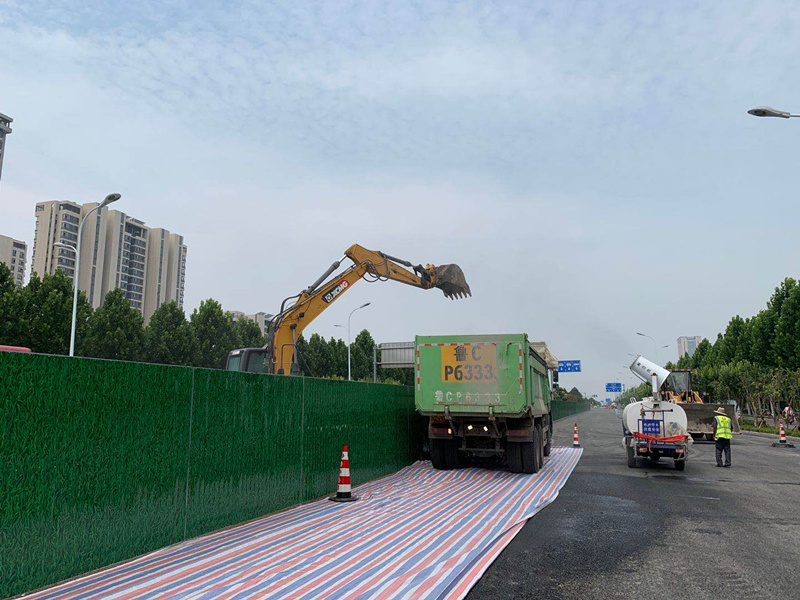 采用標(biāo)準(zhǔn)化800目防塵網(wǎng)對施工過程中垃圾進(jìn)行覆蓋,避免產(chǎn)生揚塵