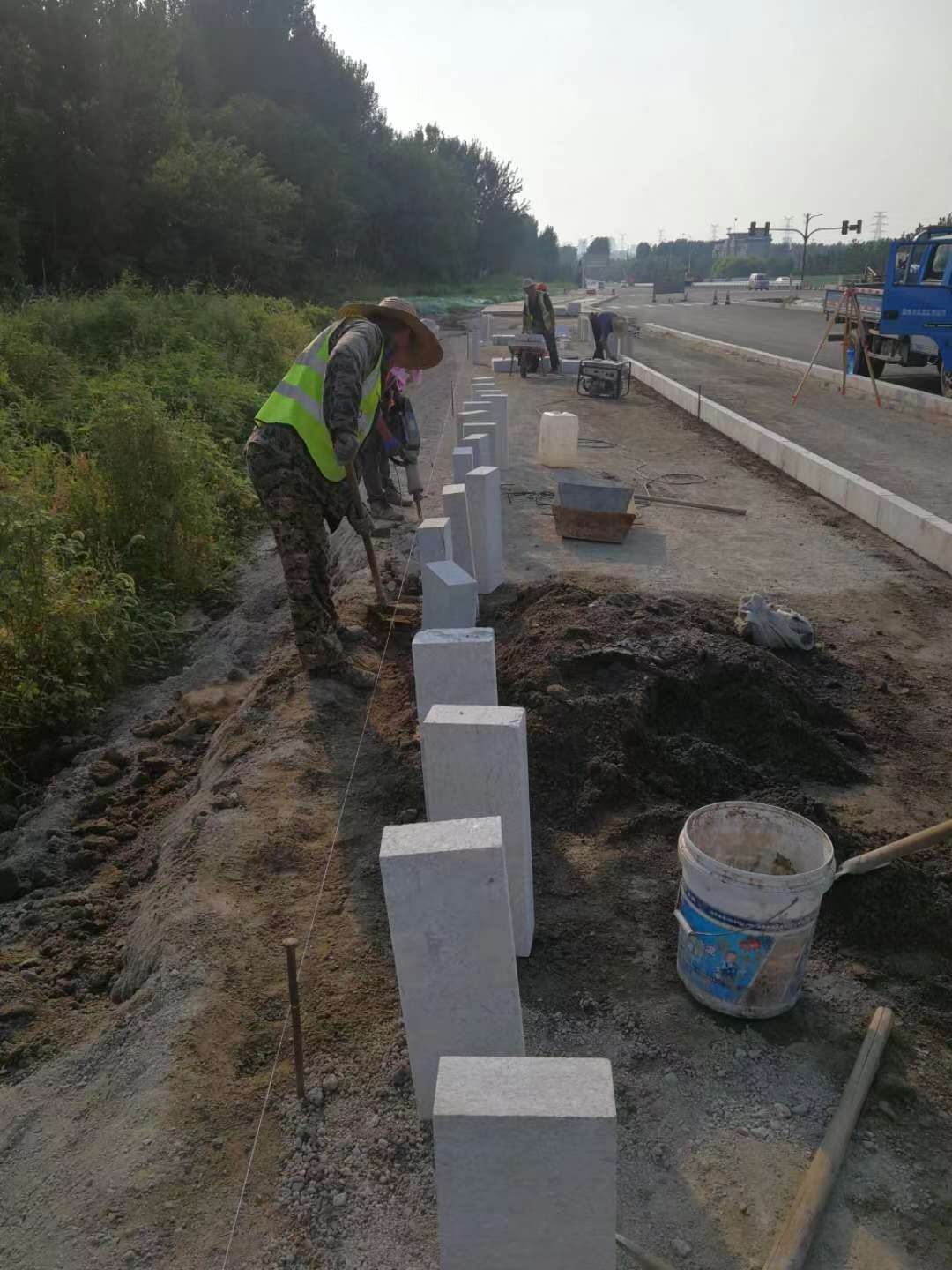 在進入8月炎熱酷暑的炎炎烈日下,在雙魯立交的施工現(xiàn)場,全體施工人員,頭頂烈日,緊張而有序的投入到雙魯立交的收尾工作中,汗水浸濕了衣衫,黝黑的皮膚站在烈日下泛著一絲紅光,這是我們工程人特有的膚色。面對雙魯剩余工程點多面光、工程零散不集中,為確保收尾工作有序完成,項目部合理安排施工計劃。與魯山大道北延工程協(xié)調(diào)施工,見縫插針的施工。充分利用時間間隙合作組織施工。剩余水穩(wěn)施工工作面比較零散,設備調(diào)轉比較頻繁,利用調(diào)轉設備時間拌和水泥穩(wěn)定風化砂施工慢性一體,水穩(wěn)停機后利用晚間時間加班拌和砼,充分利用間歇時間組織施工。為了確保魯山大道北延瀝青面層攤鋪合理調(diào)配施工隊伍進行魯山大道北延附屬施工。進入8月大雨、小雨不斷,而施工人員不畏風雨穿著雨衣繼續(xù)施工,爭分奪秒與時間賽跑、與天氣搶時間搶工期。