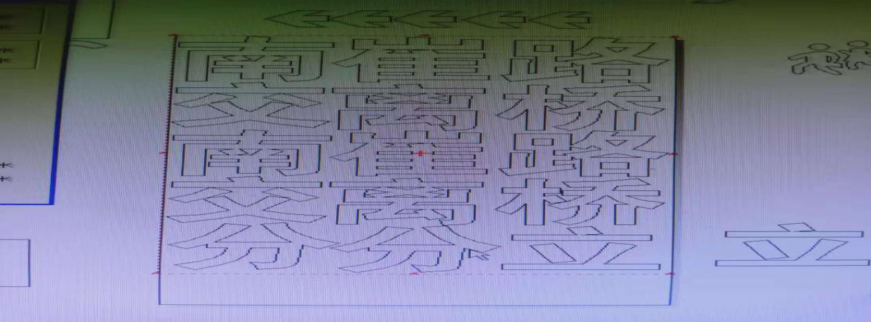這樣的漢字是八角指示牌的內(nèi)容。正好這批任務(wù)和另一批警示樁的刻字任務(wù)同時交到刻字室。結(jié)合兩項任務(wù),最終選定了先把八角牌子的內(nèi)容排好版,然后利用字與字的空隙再把警示內(nèi)容加進去的方案。方案送到交安分公司領(lǐng)導(dǎo)審閱的時候,領(lǐng)導(dǎo)給予了我高度肯定和贊揚。這樣,我不但把兩個刻字任務(wù)同時高質(zhì)量圓滿完成了,也收獲了工作的成就感,及節(jié)約帶來的幸福感。