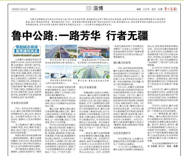 為展示淄博建筑業(yè)優(yōu)秀企業(yè)和風(fēng)采人物,樹立行業(yè)社會形象,營造激勵企業(yè)家干事創(chuàng)業(yè)的社會氛圍,淄博市住房和城鄉(xiāng)建設(shè)保障服務(wù)中心聯(lián)合魯中晨報,推出“擎起城市脊梁 聚焦建筑風(fēng)采”專欄。緊緊圍繞開展高質(zhì)量發(fā)展“樹標(biāo)對標(biāo)奪標(biāo)”行動,聚焦建筑行業(yè),宣傳淄博市新時代建筑業(yè)企業(yè)文化和品牌建設(shè)典型,2020年11月24日專欄第九期特別推介了淄博市優(yōu)秀建筑業(yè)企業(yè)———山東魯中公路建設(shè)有限公司。全文內(nèi)容如下: